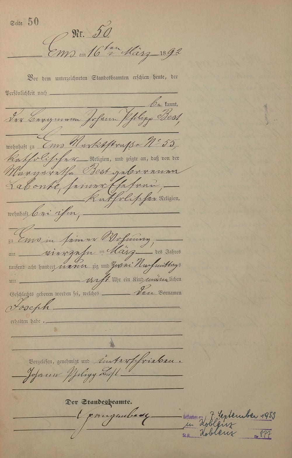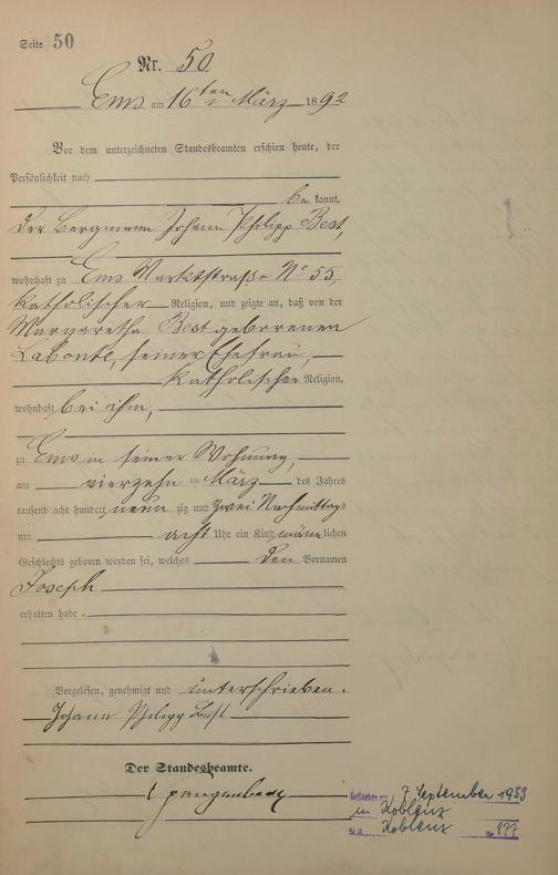 Geburtsregister 1892