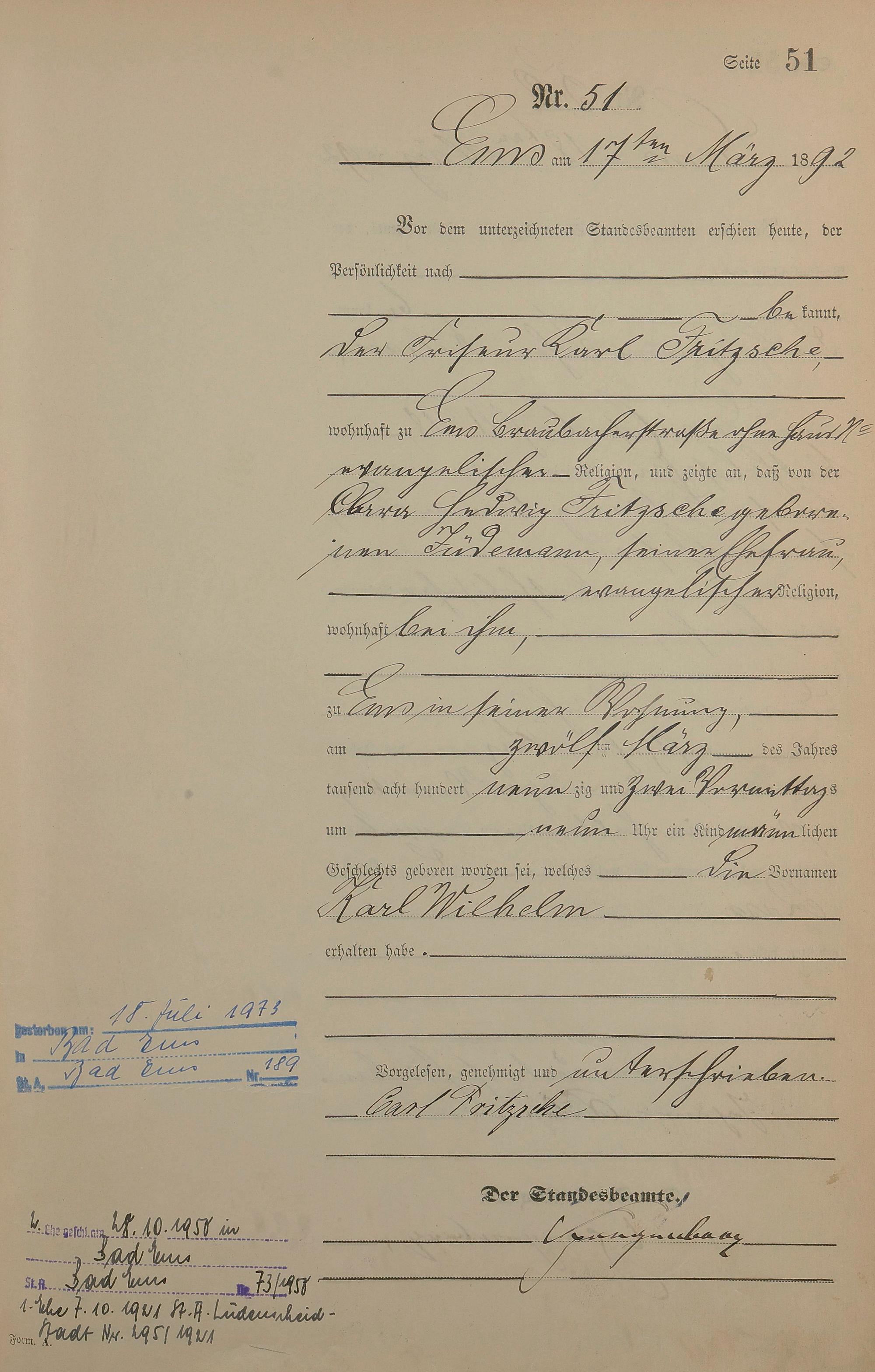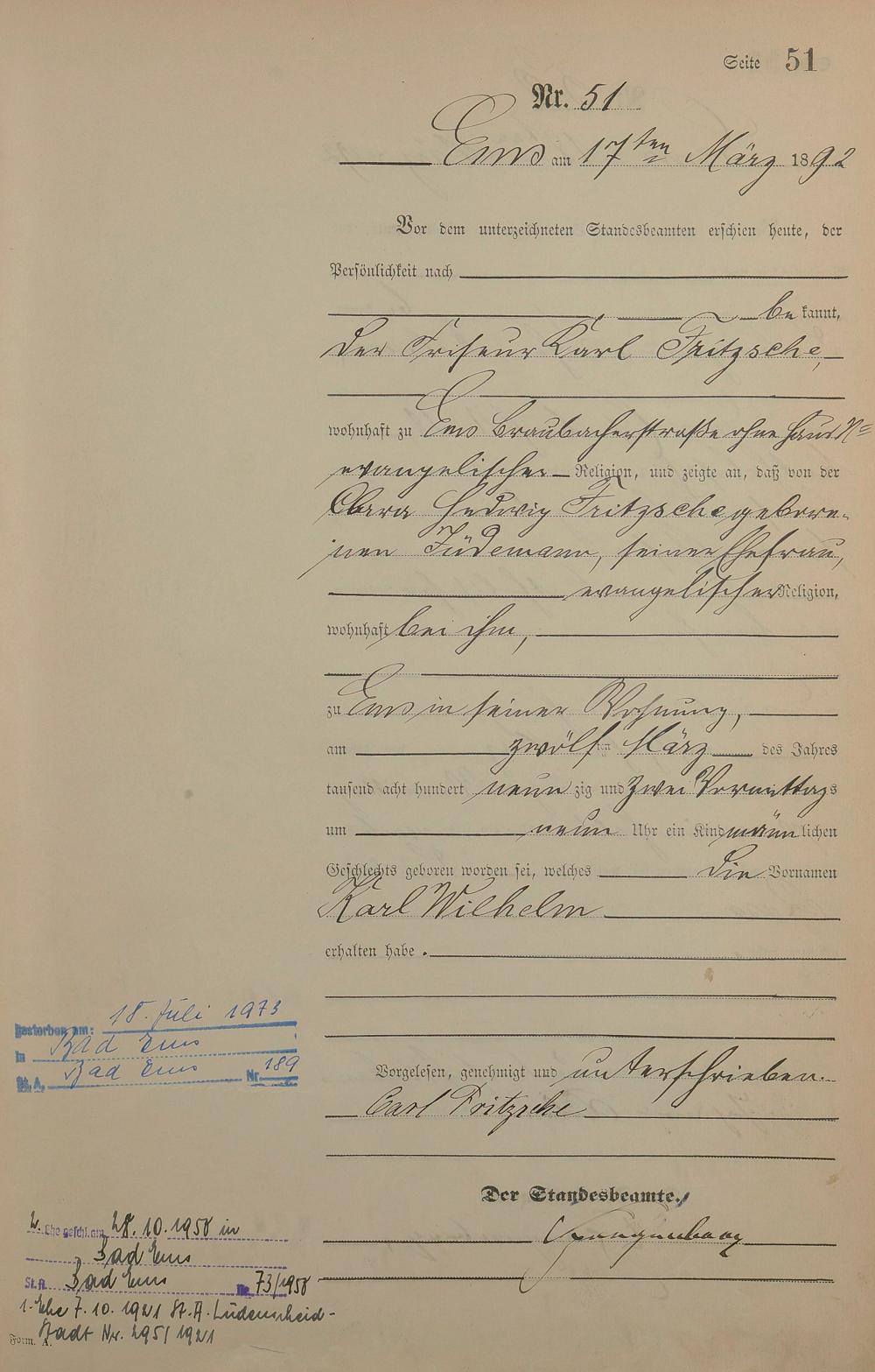 Geburtsregister 1892