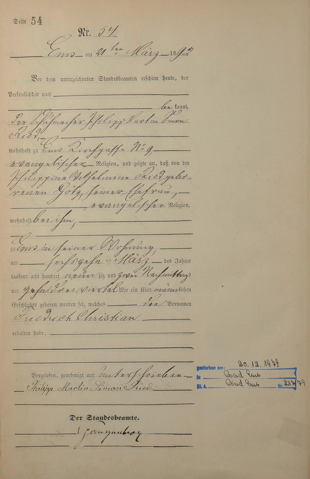Geburtsregister 1892