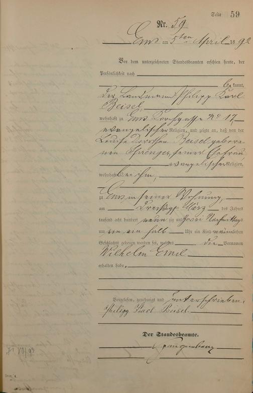Geburtsregister 1892