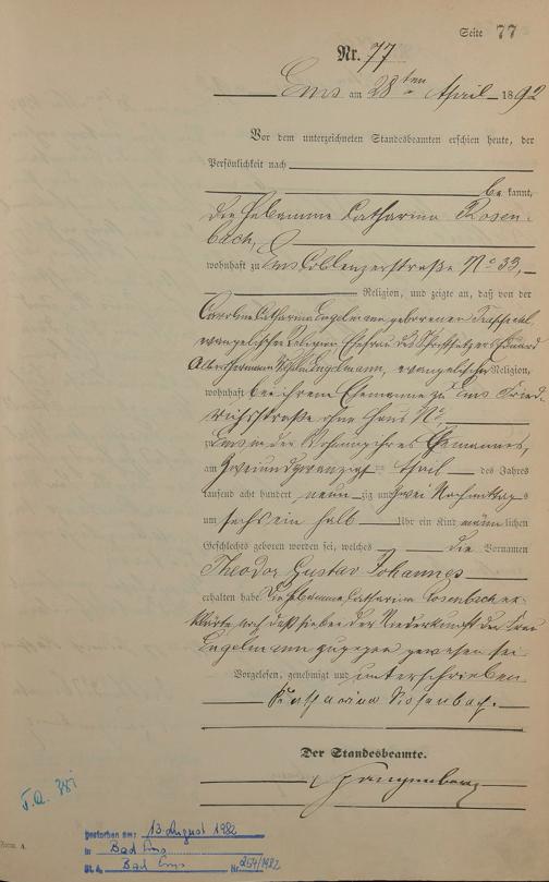 Geburtsregister 1892