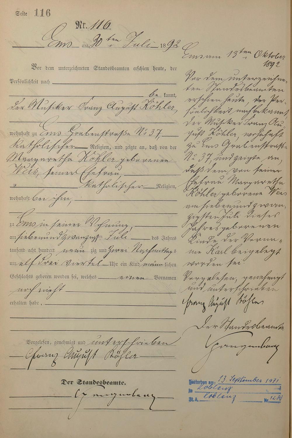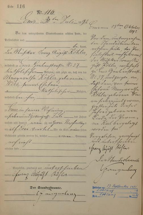 Geburtsregister 1892