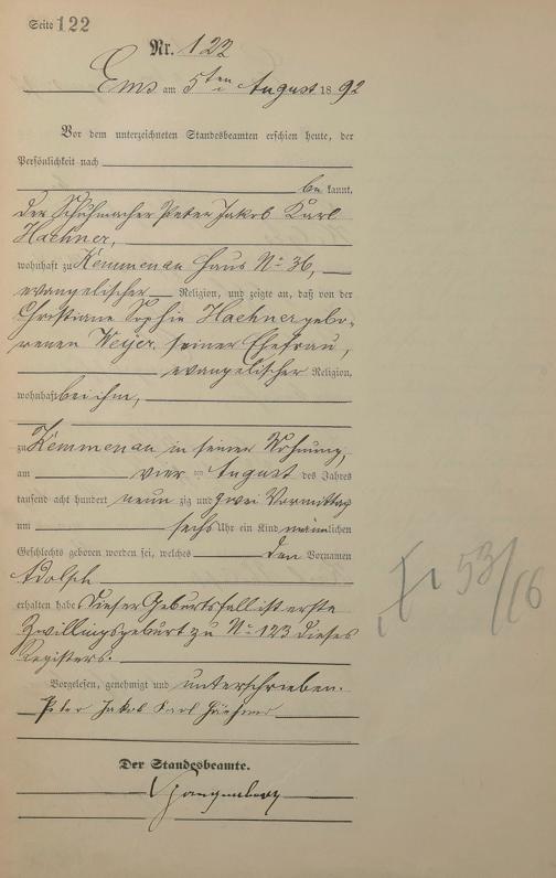 Geburtsregister 1892