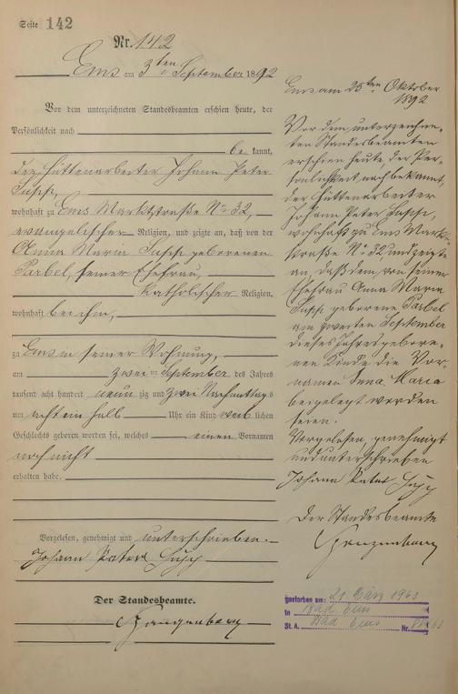 Geburtsregister 1892