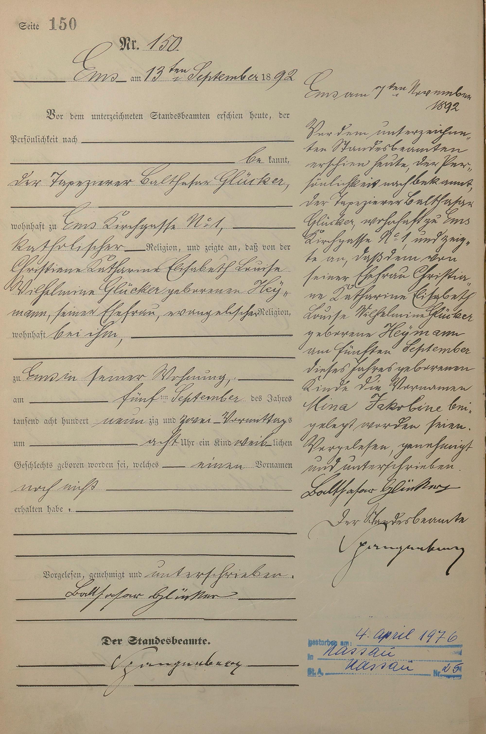 Geburtsregister 1892