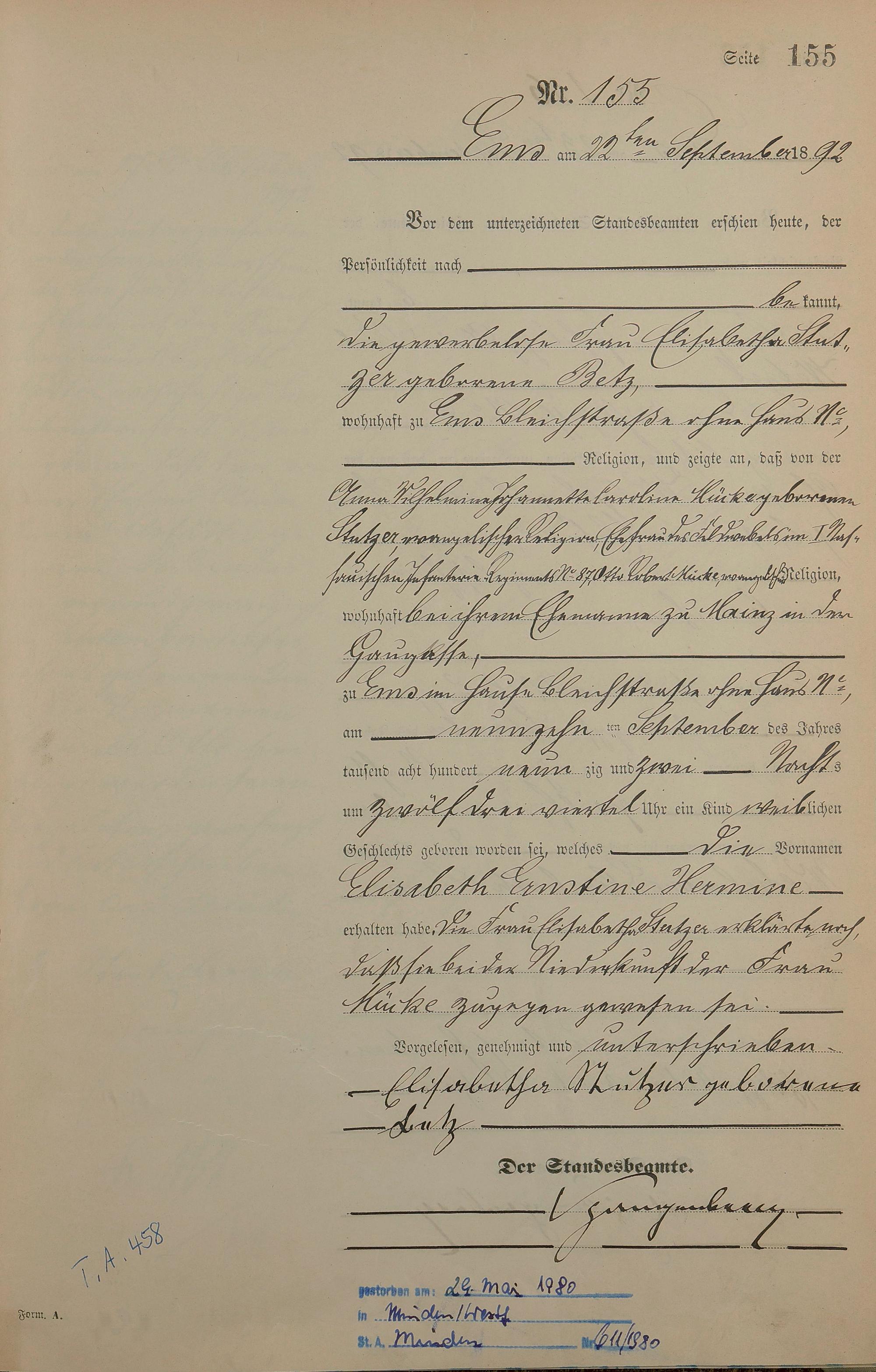 Geburtsregister 1892