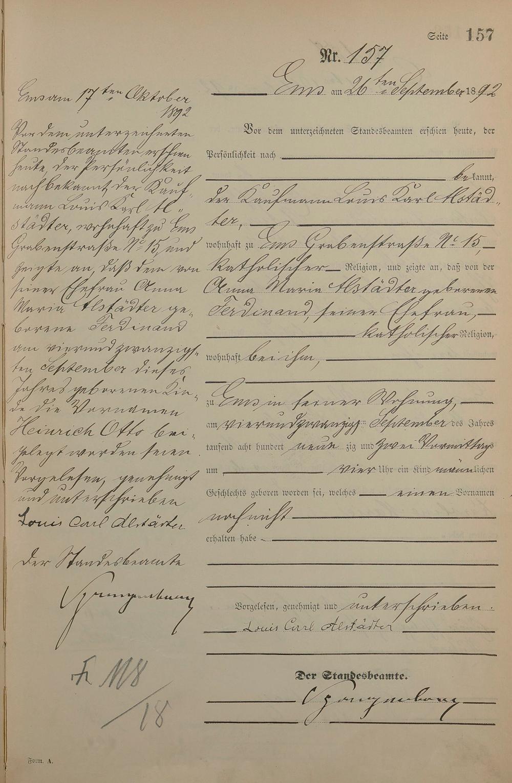 Geburtsregister 1892