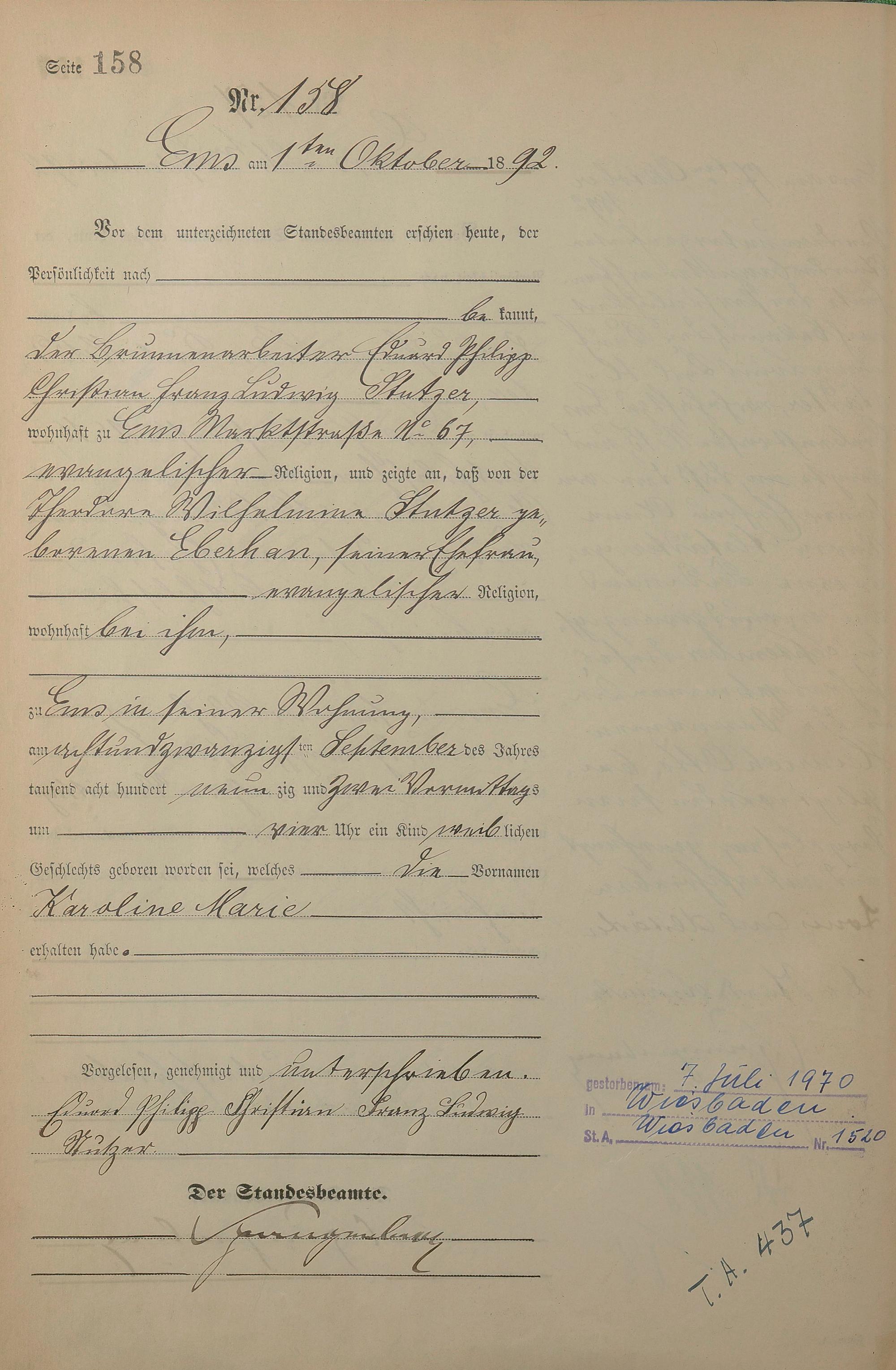 1268: Geburtsregister 1892