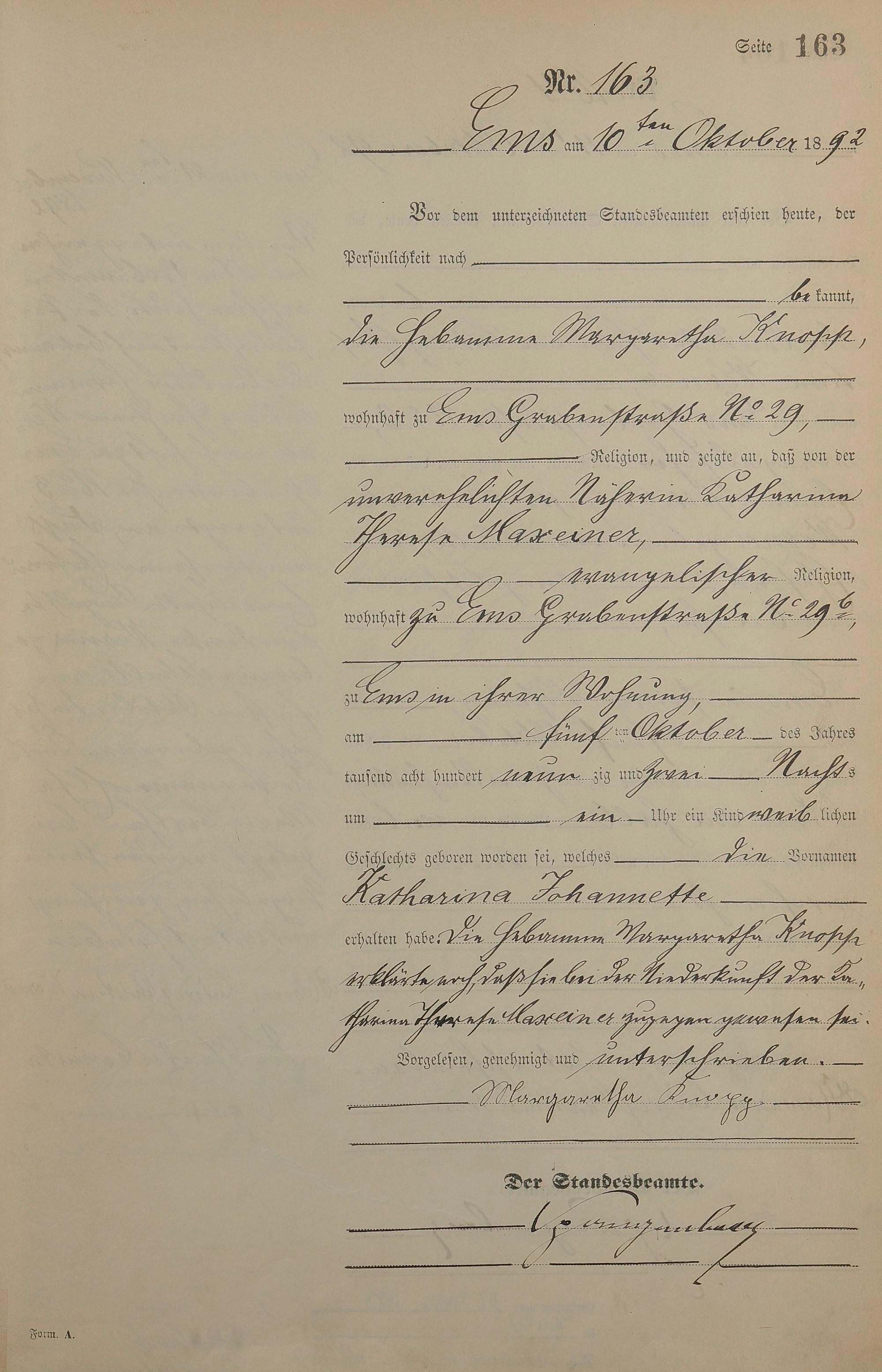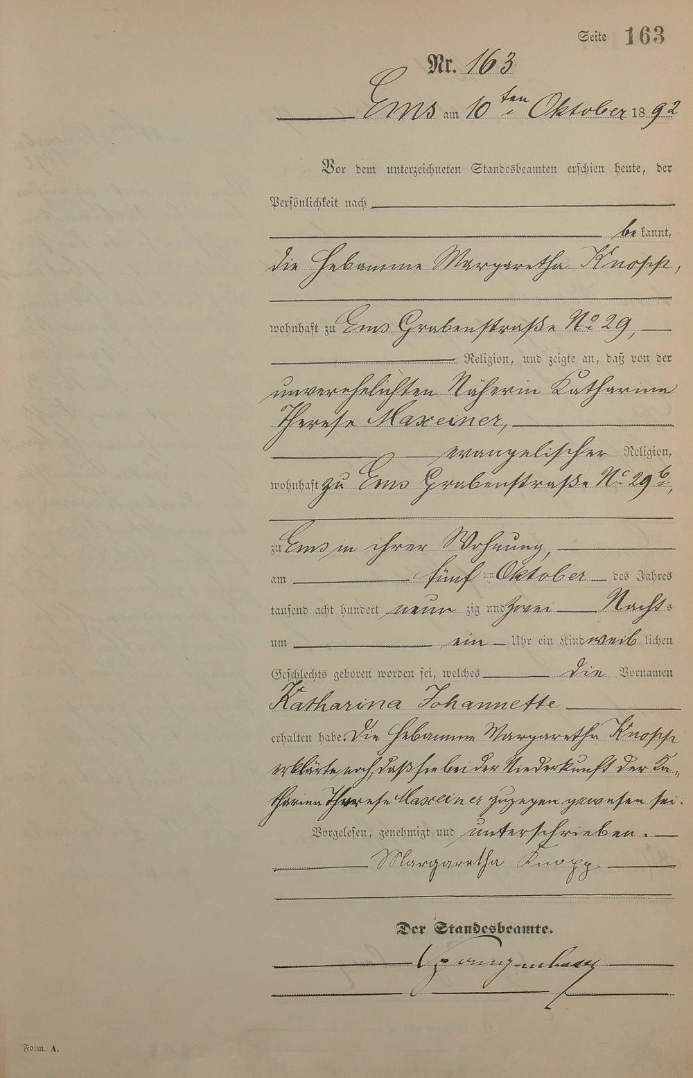 Geburtsregister 1892