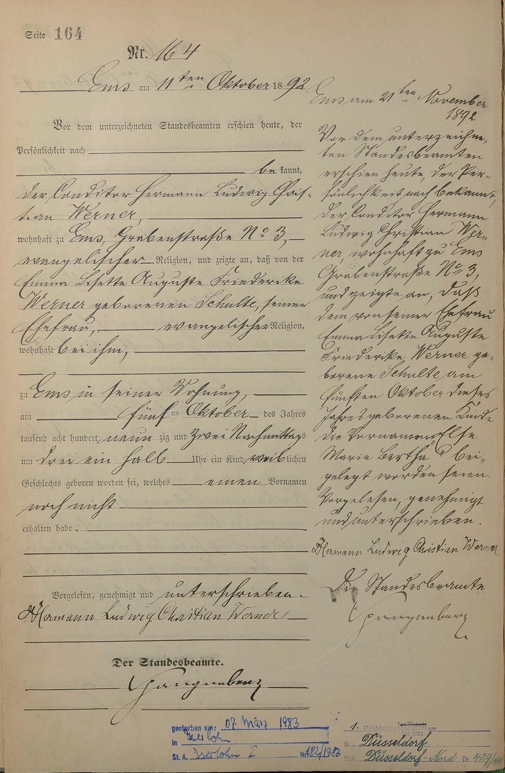 Geburtsregister 1892