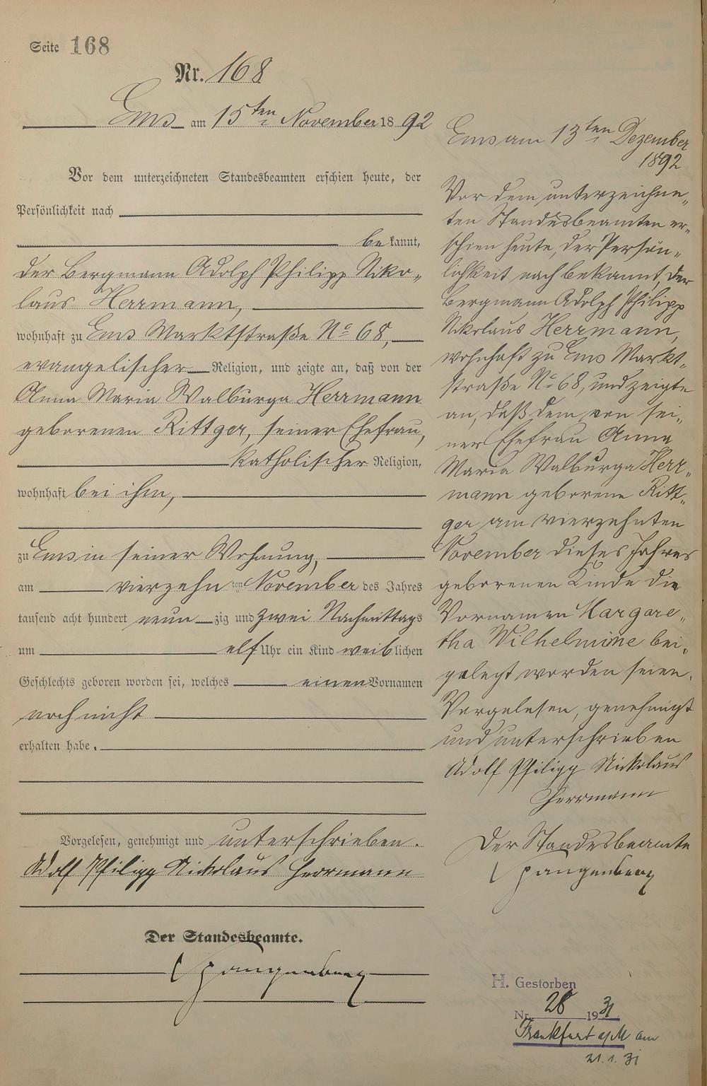 1268: Geburtsregister 1892