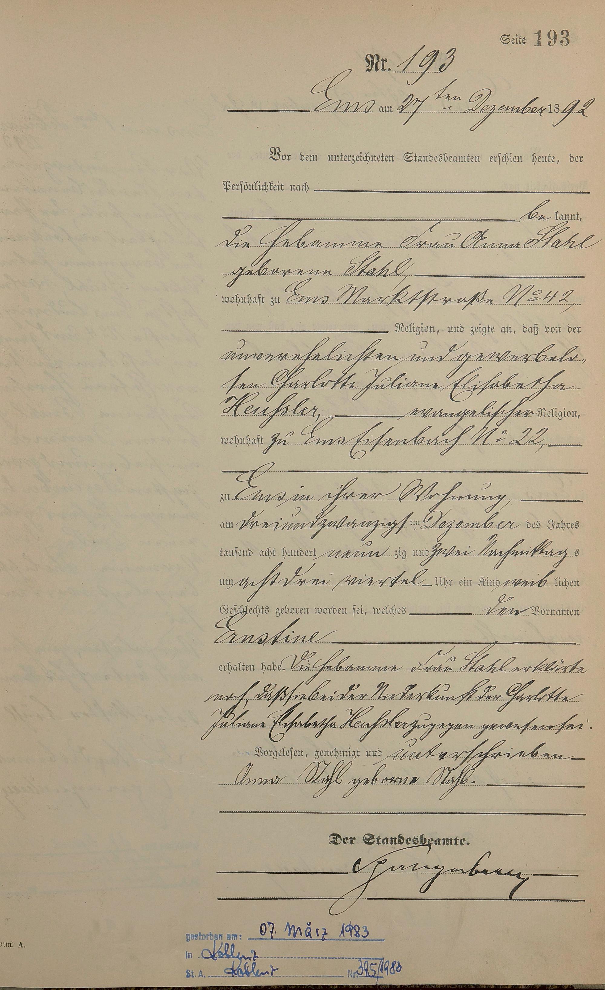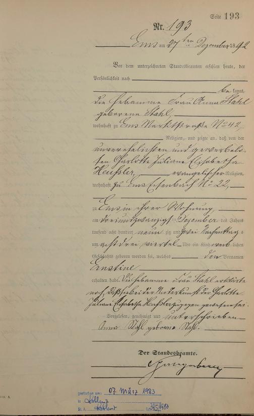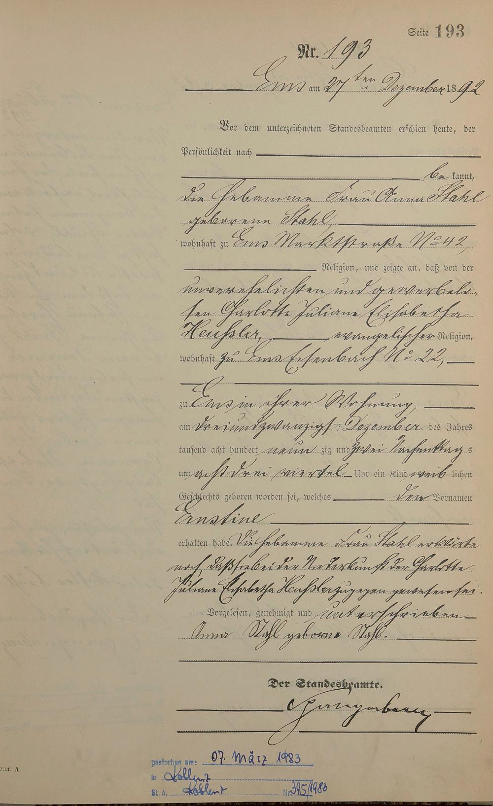 Geburtsregister 1892