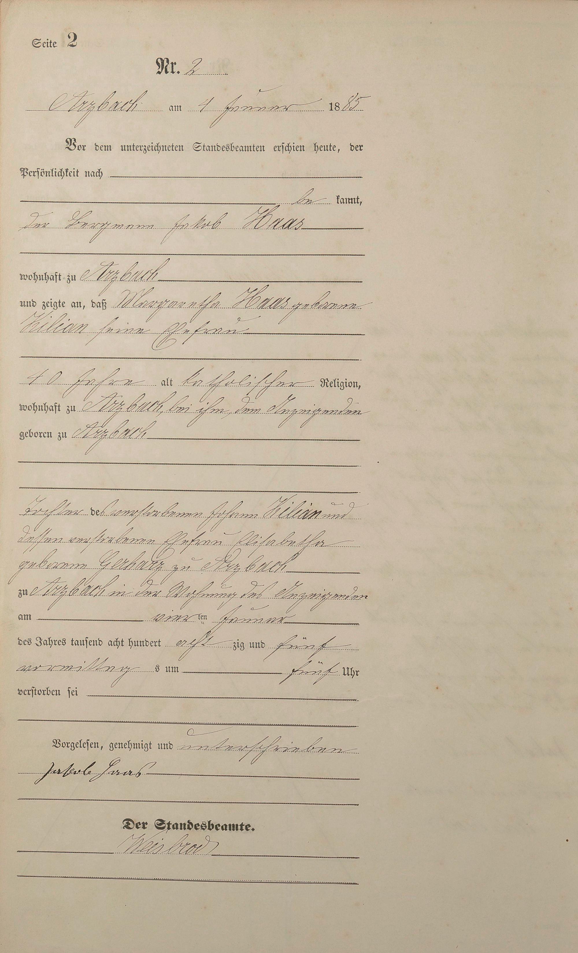 Sterberegister 1885