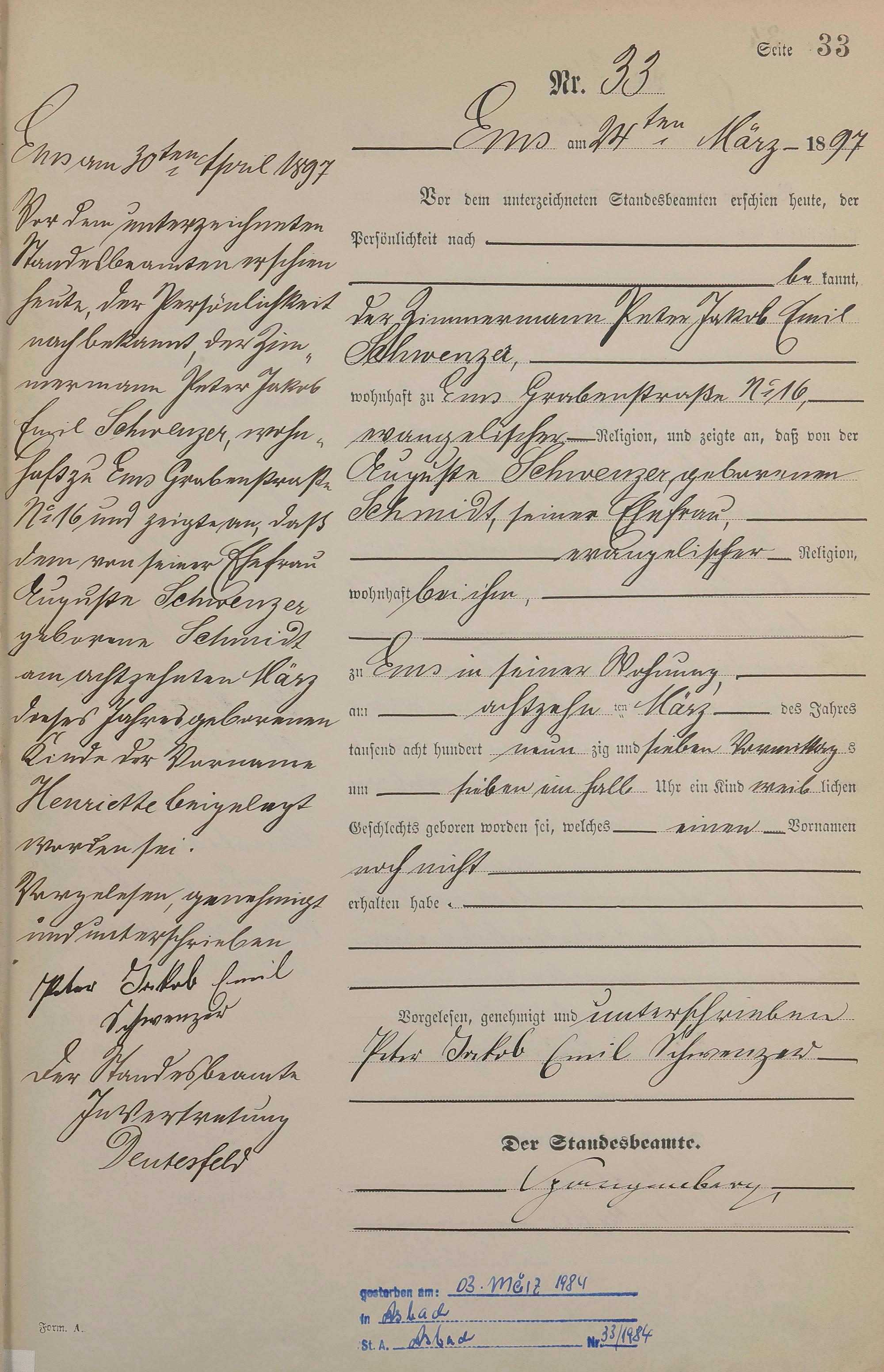 Geburtsregister 1897