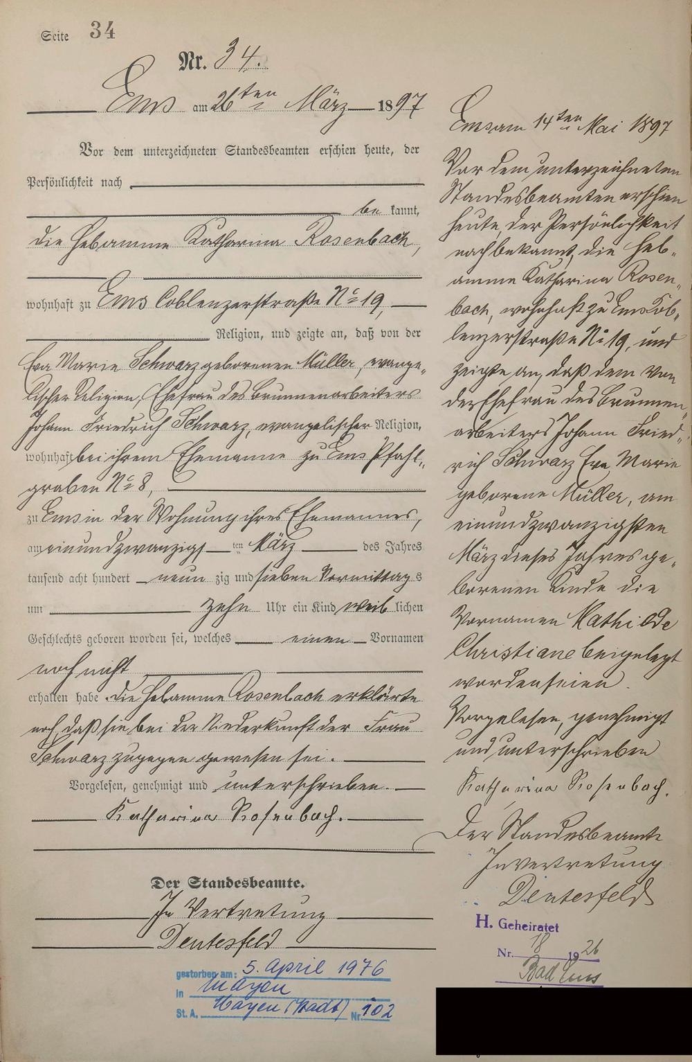 Geburtsregister 1897