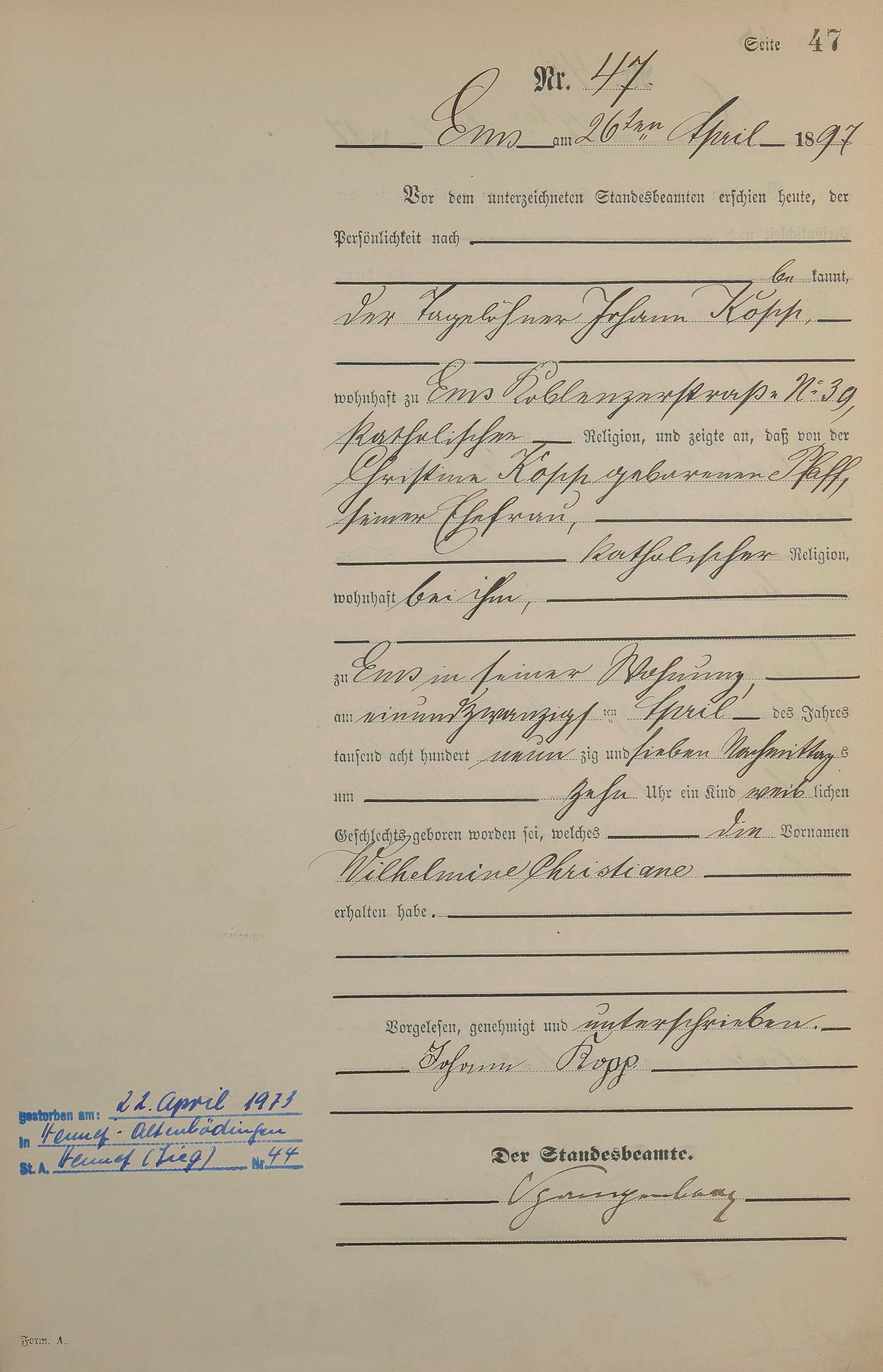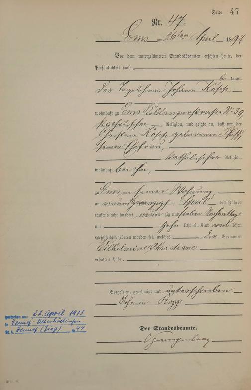 1273: Geburtsregister 1897