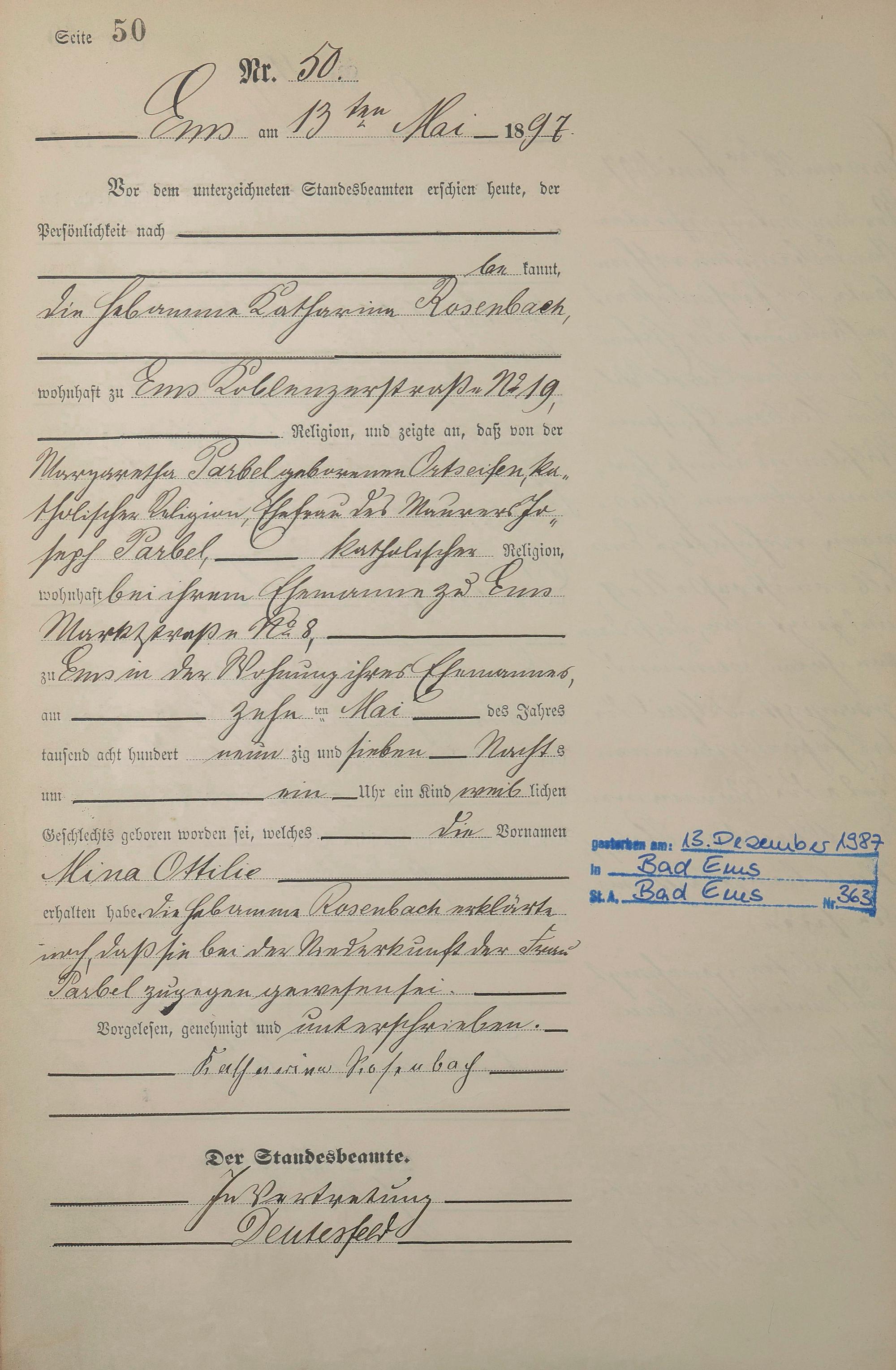 1273: Geburtsregister 1897