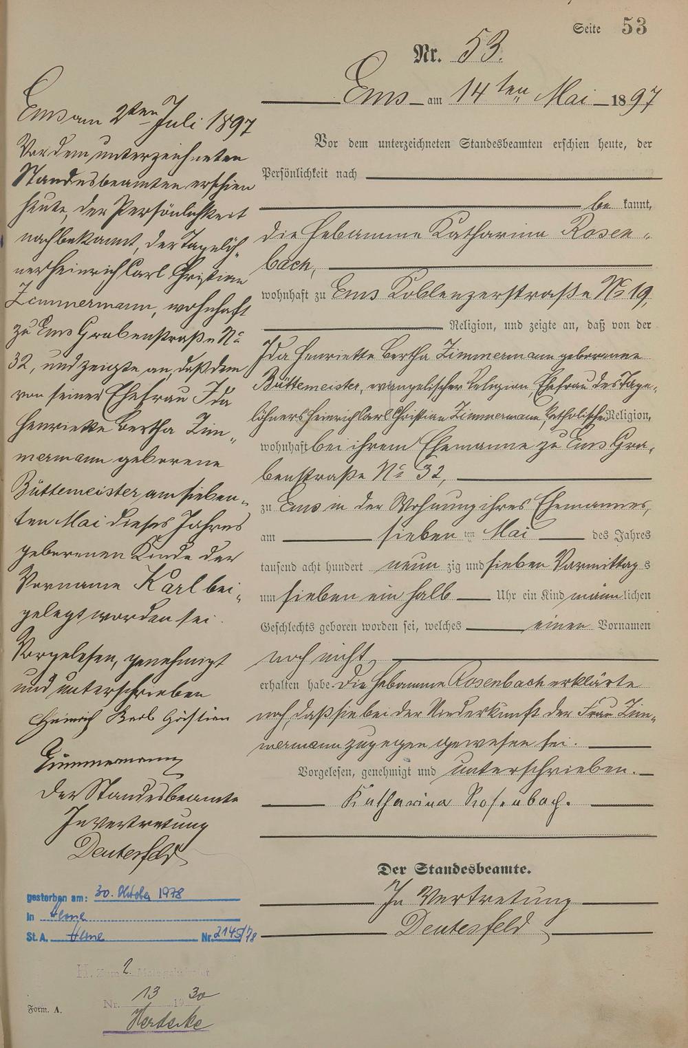 Geburtsregister 1897