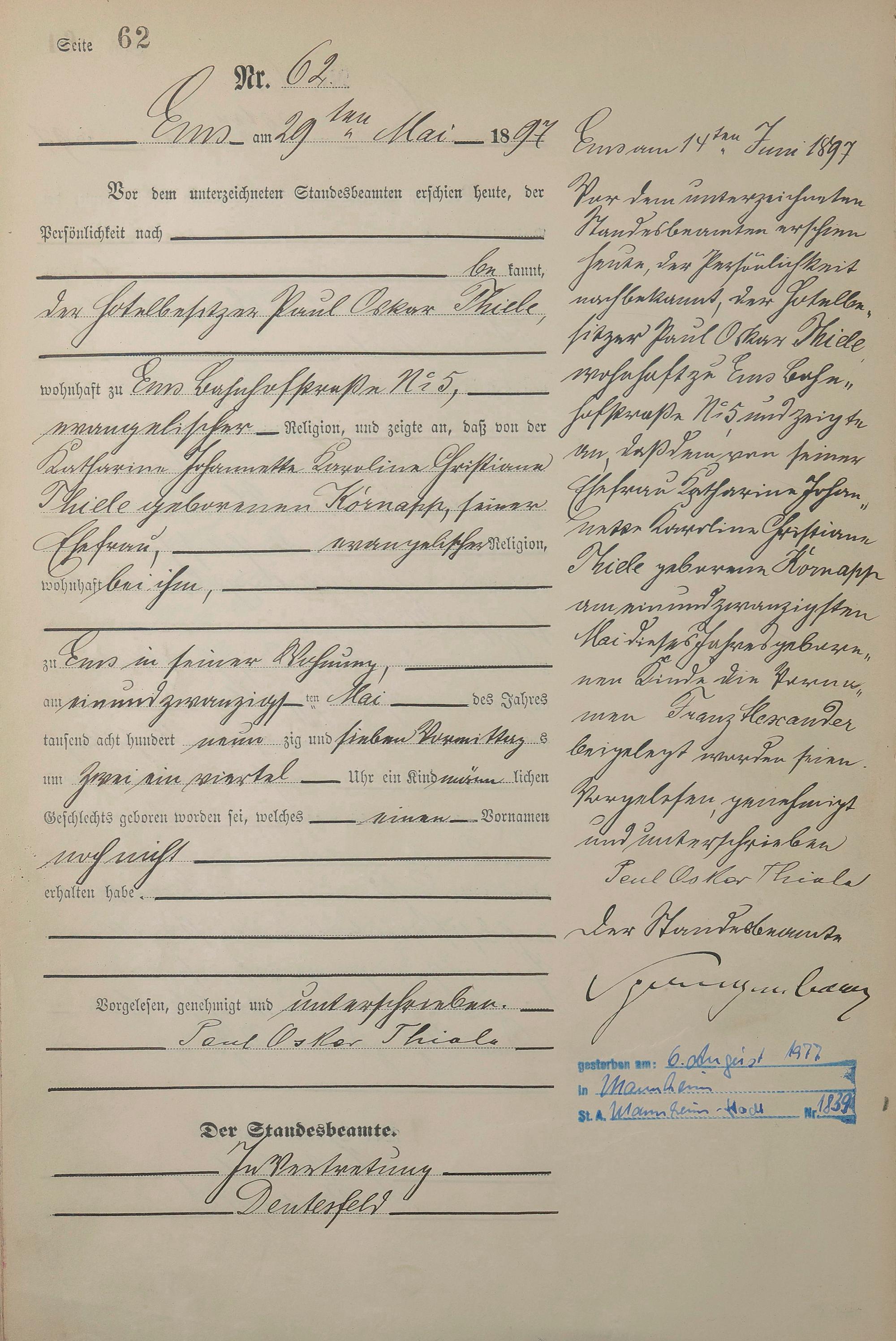 Geburtsregister 1897