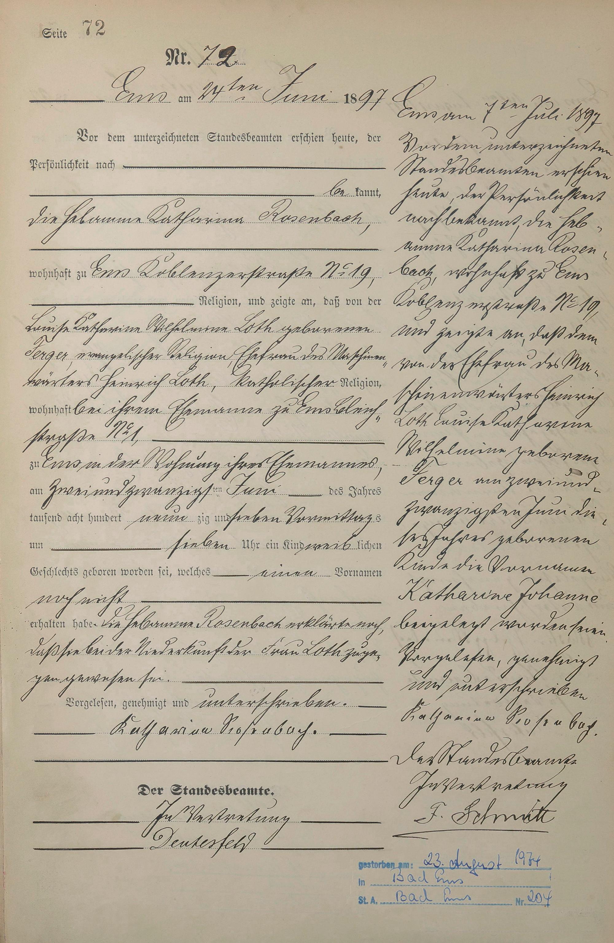 Geburtsregister 1897