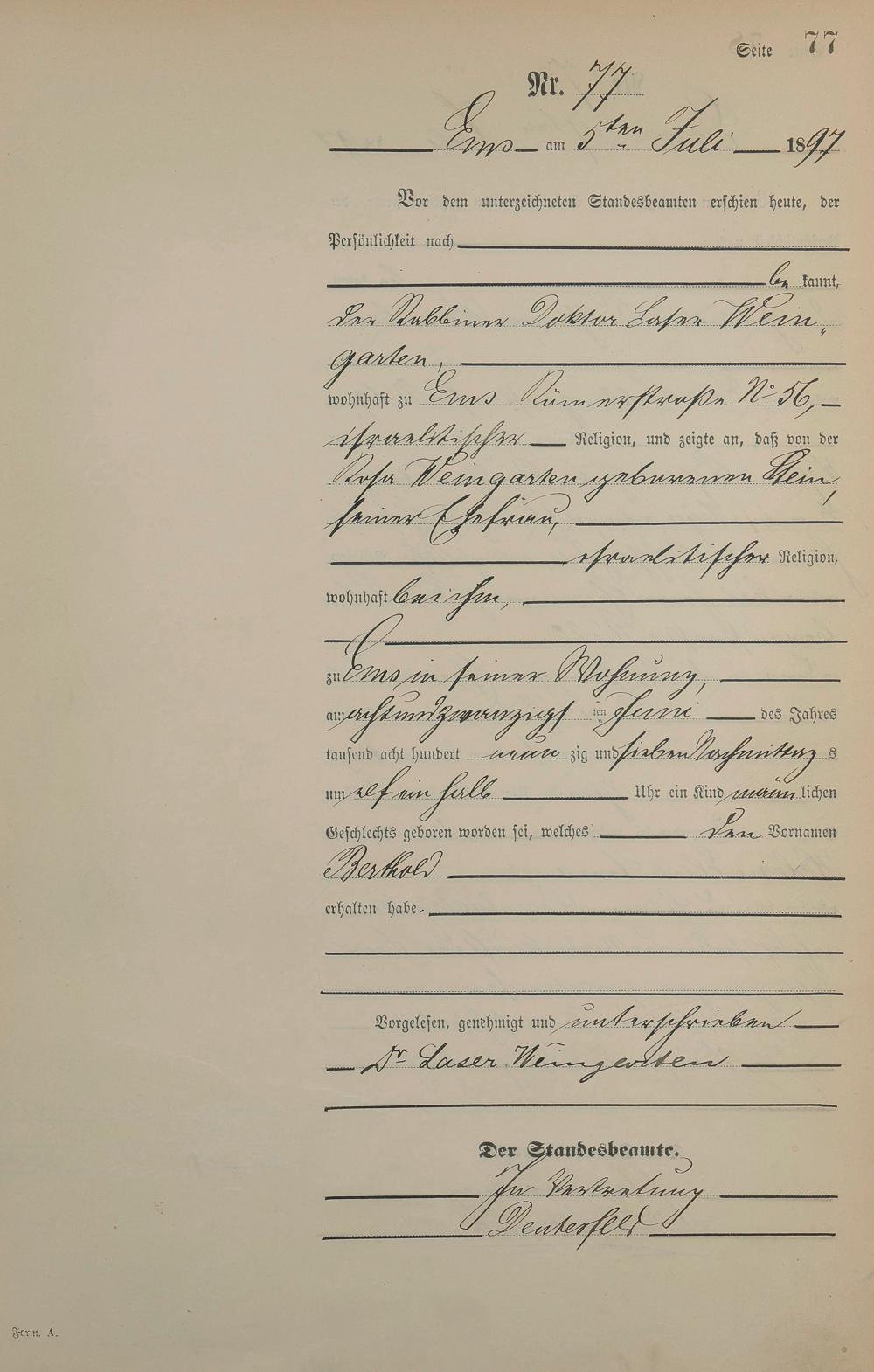 Geburtsregister 1897