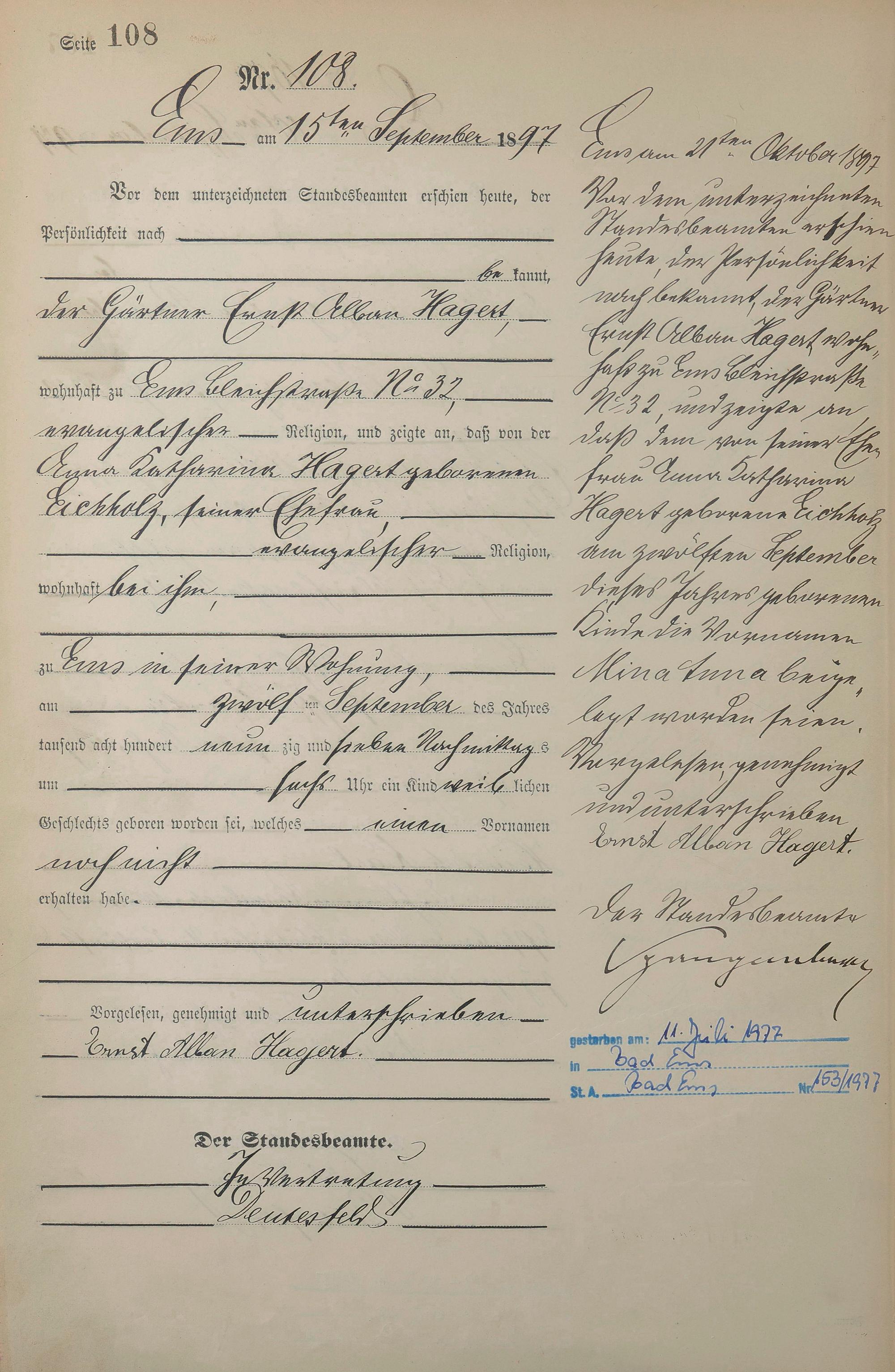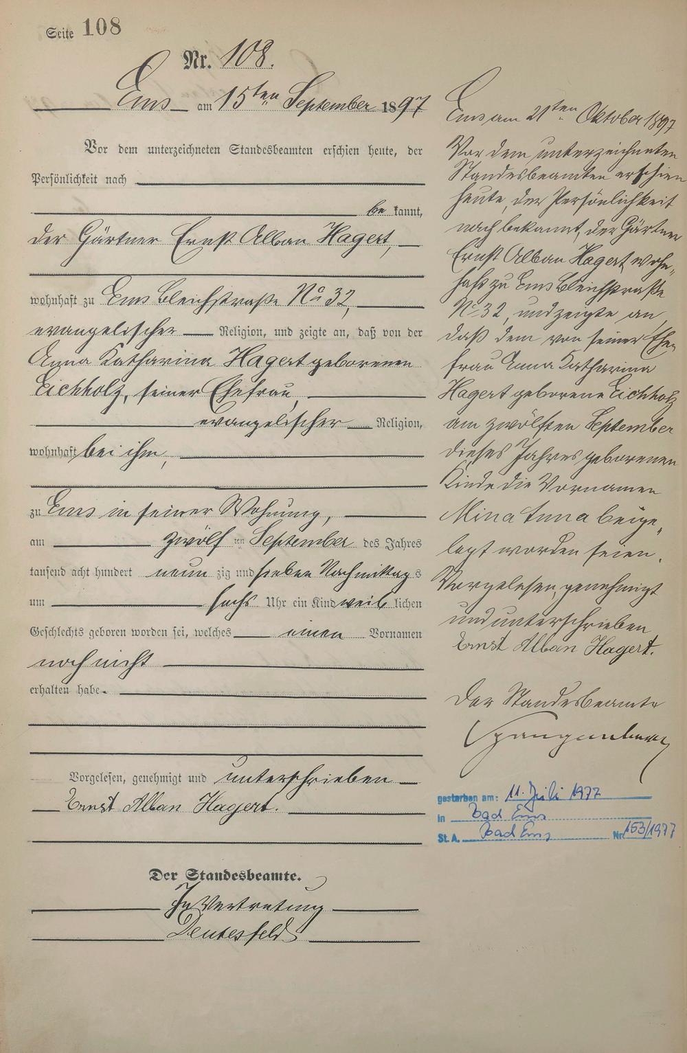Geburtsregister 1897