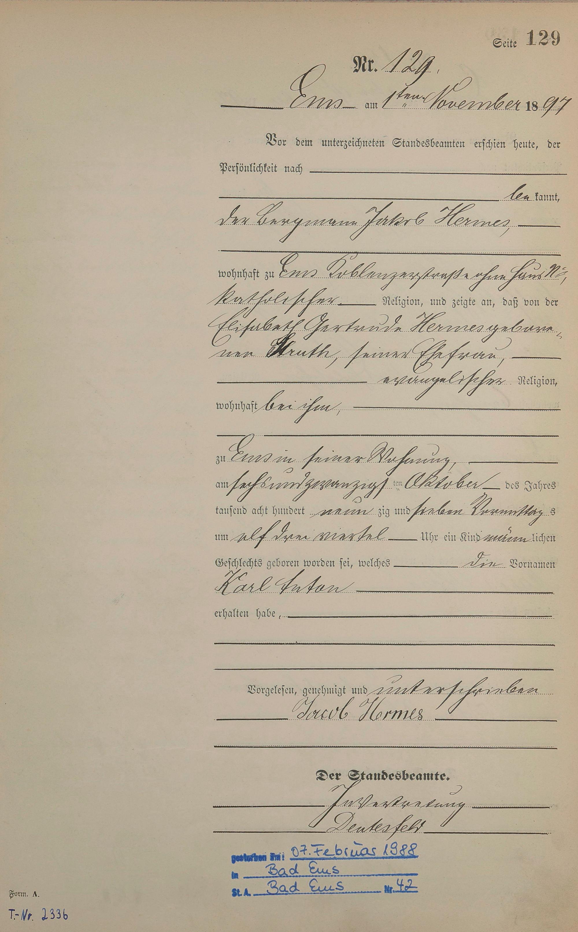 1273: Geburtsregister 1897