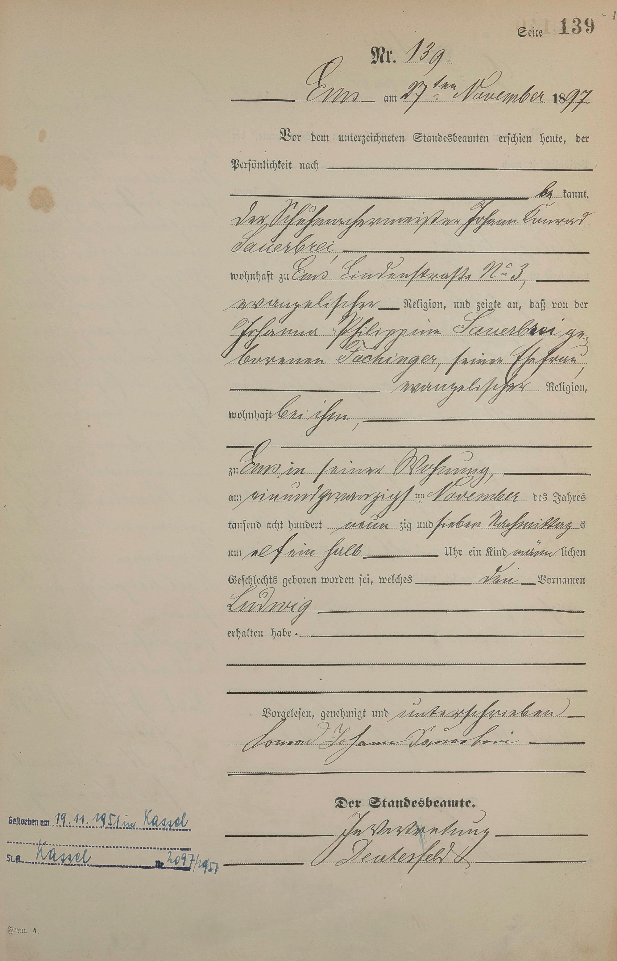 Geburtsregister 1897