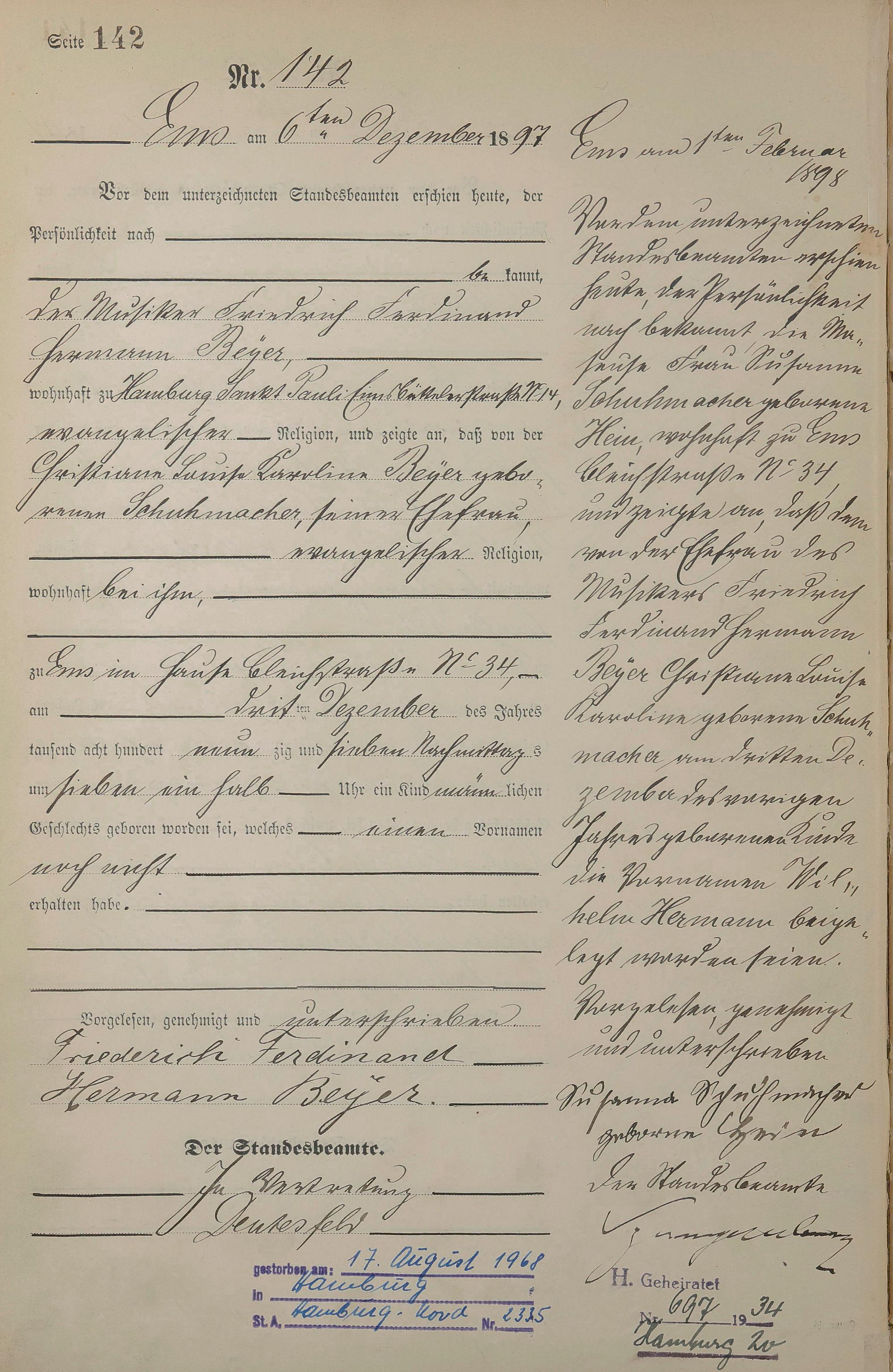 Geburtsregister 1897