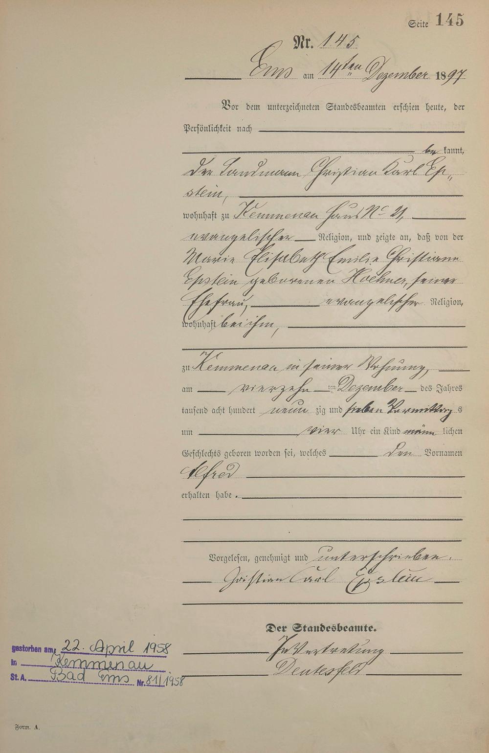 1273: Geburtsregister 1897