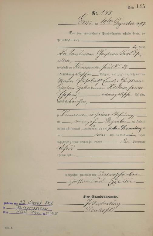 Geburtsregister 1897