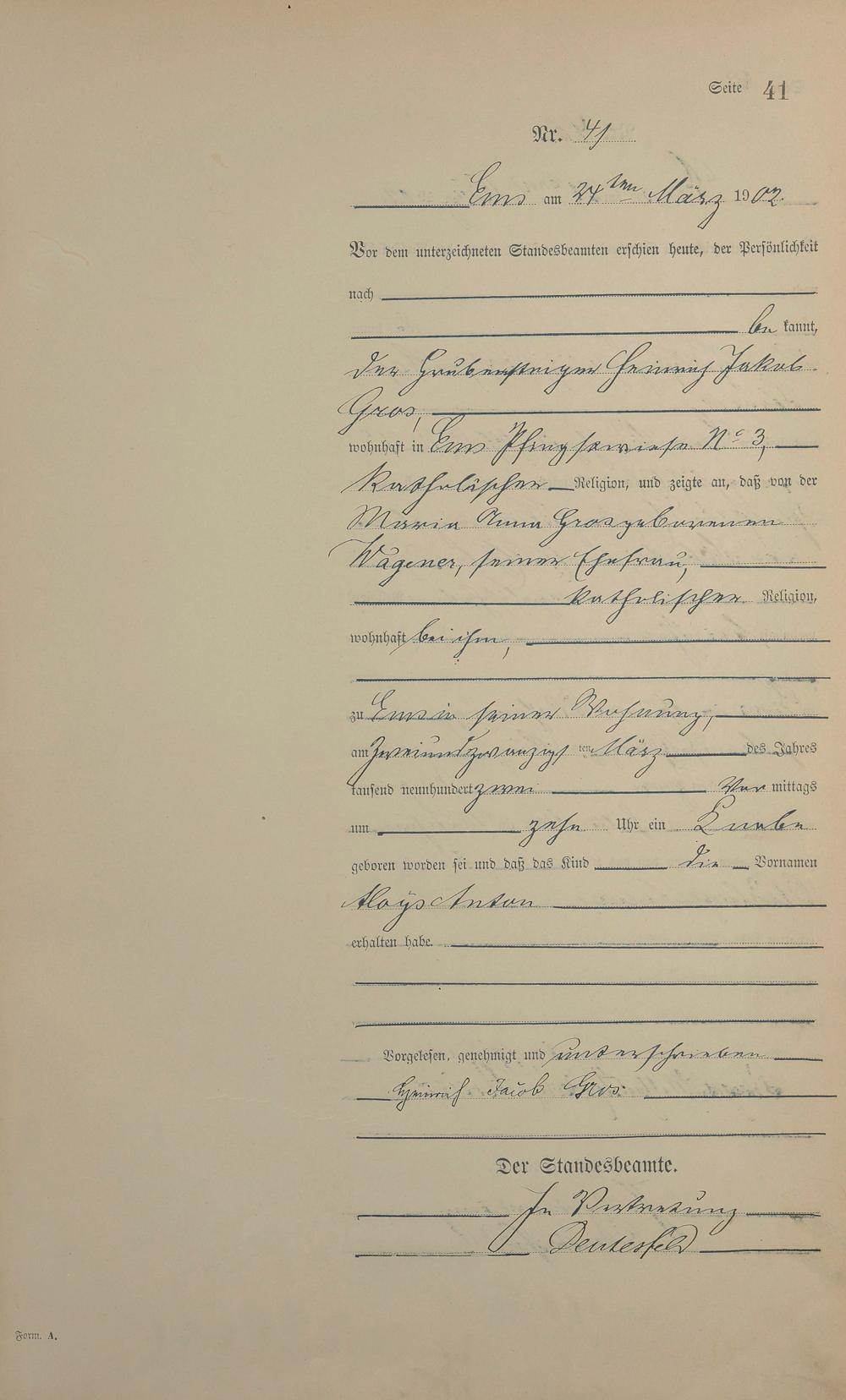 1278: Geburtsregister 1902
