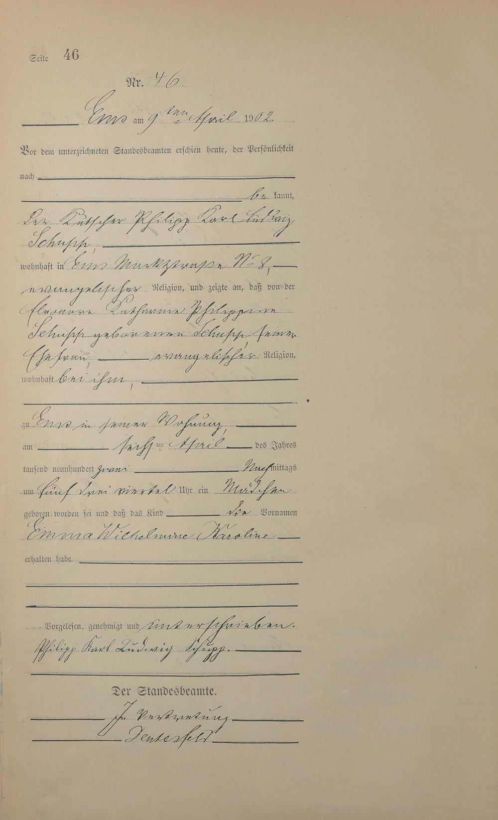1278: Geburtsregister 1902
