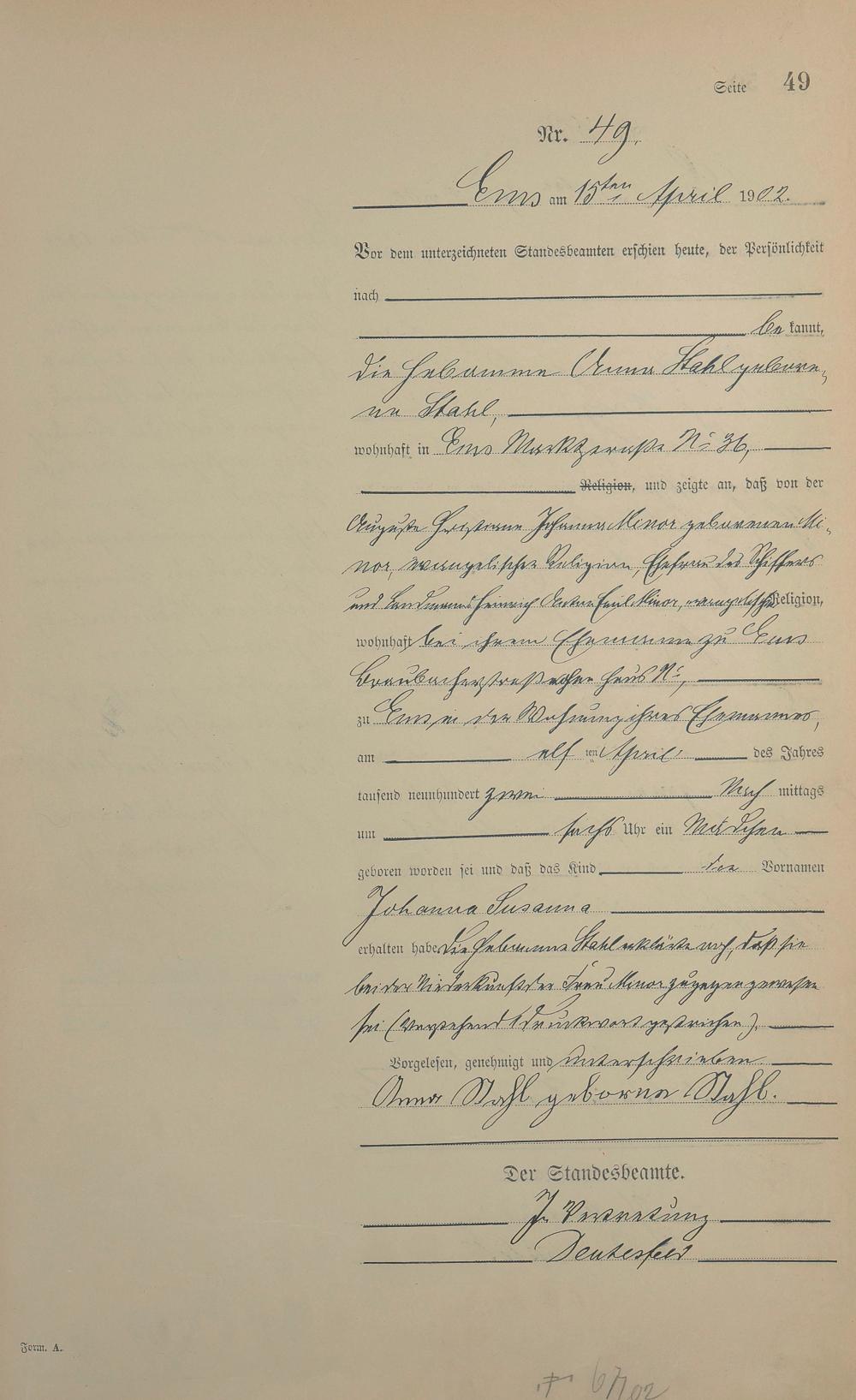 1278: Geburtsregister 1902