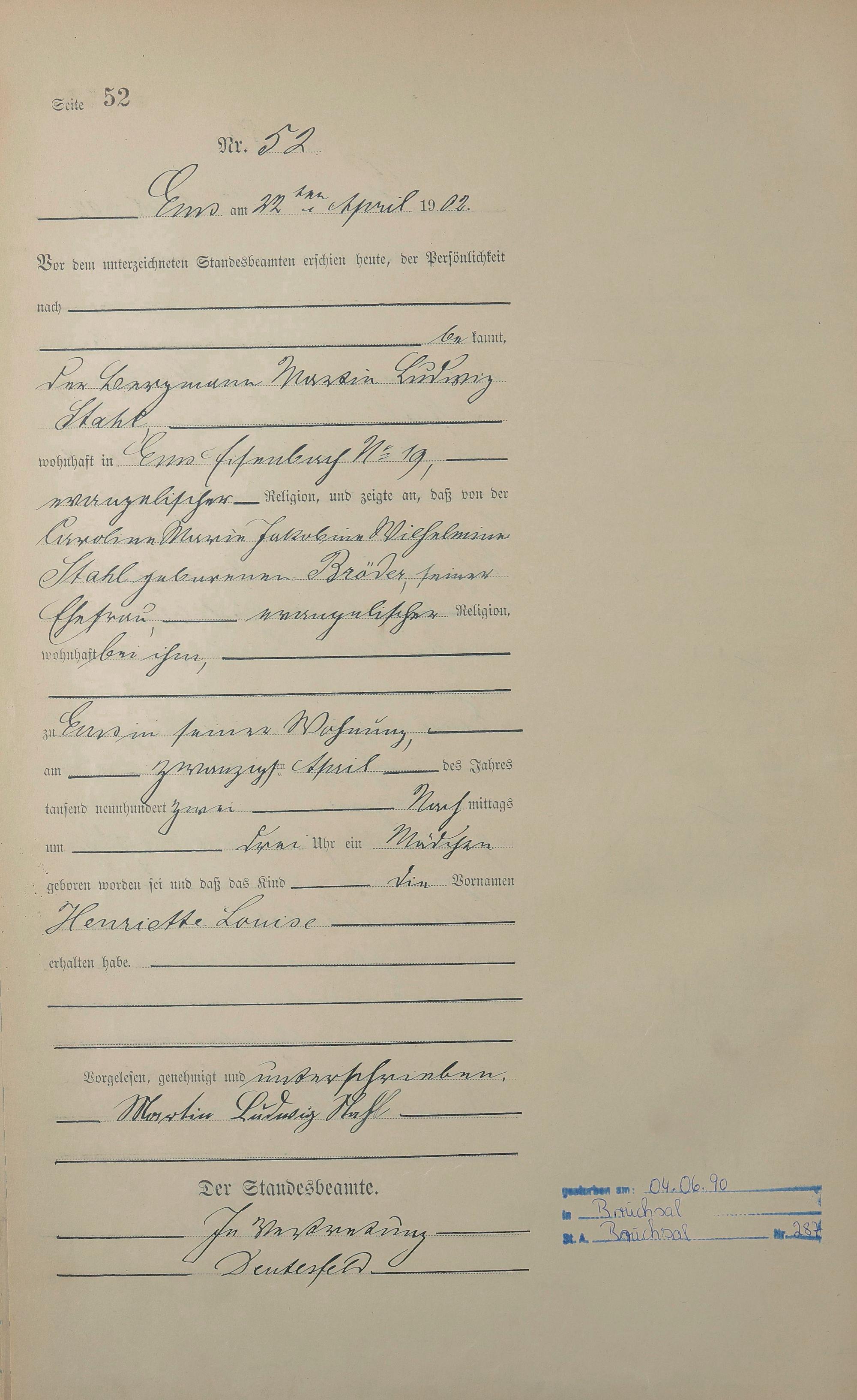 1278: Geburtsregister 1902