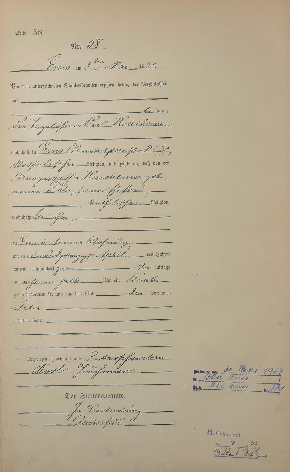 Geburtsregister 1902