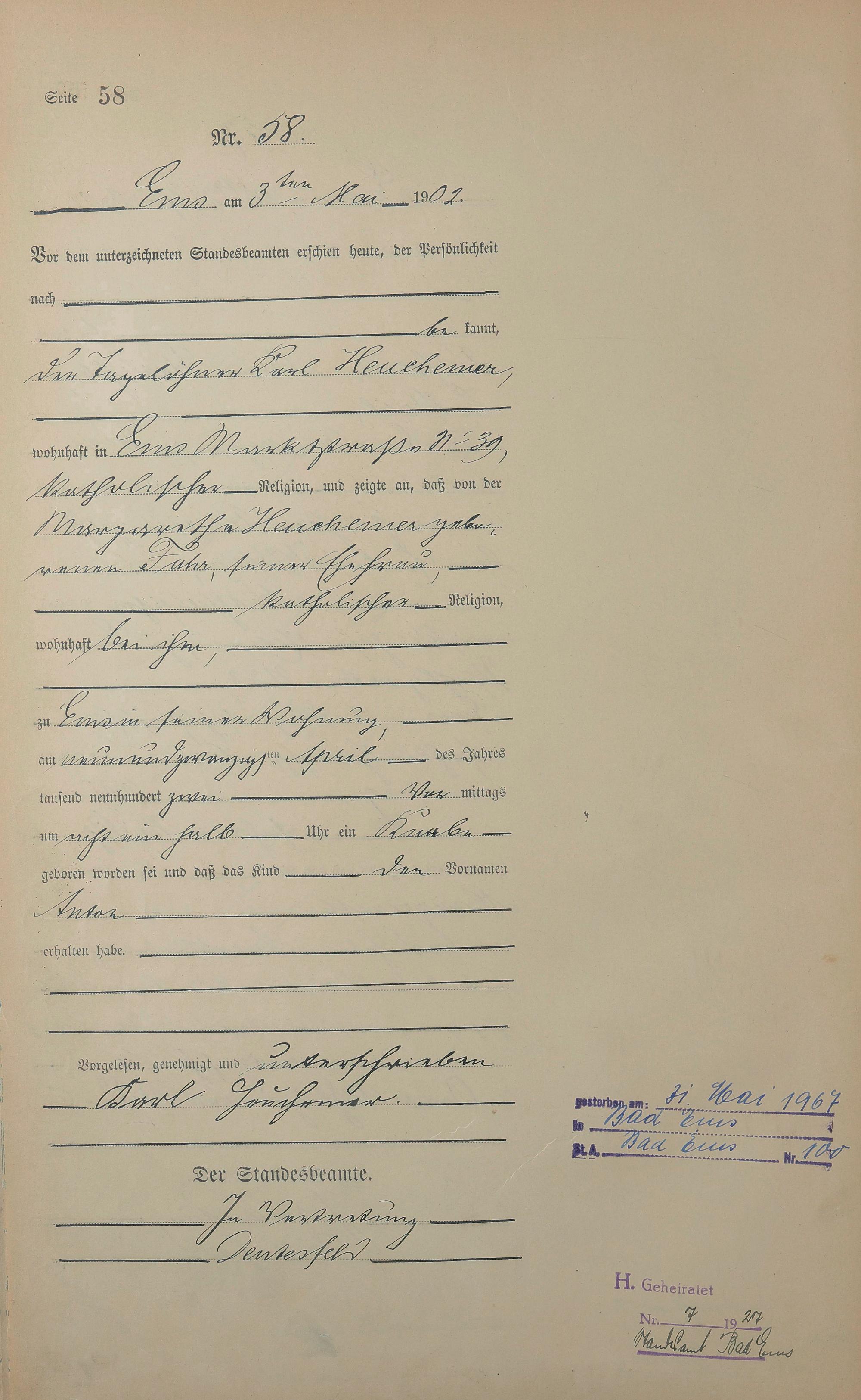 1278: Geburtsregister 1902