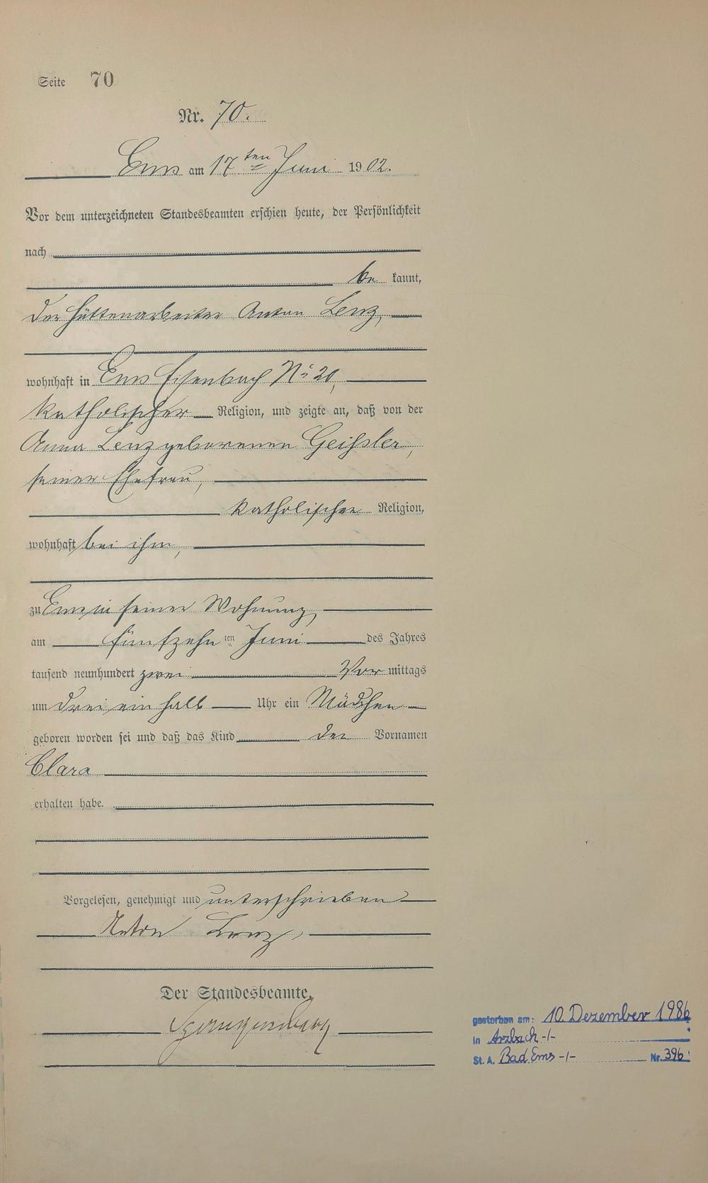 1278: Geburtsregister 1902