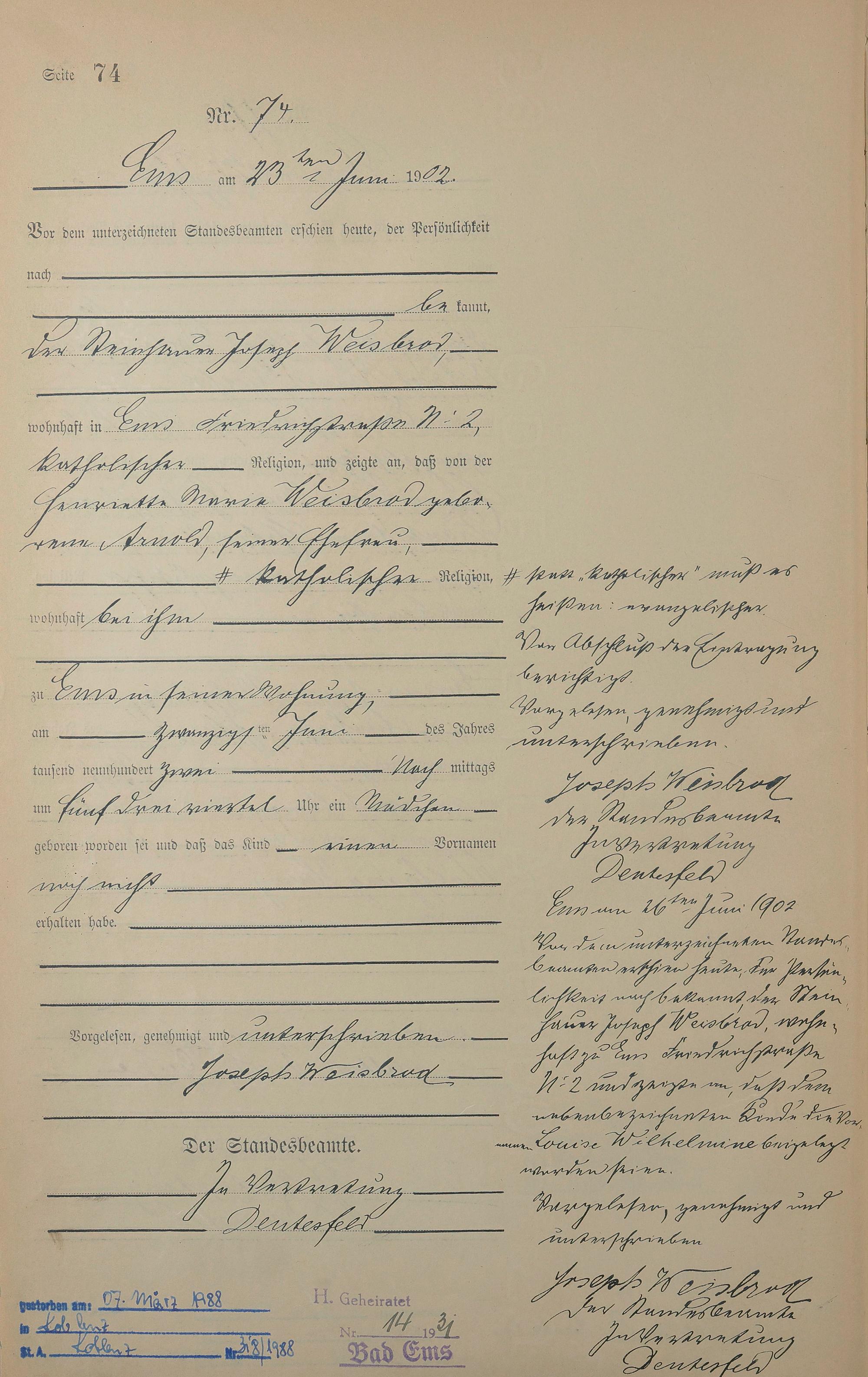 1278: Geburtsregister 1902