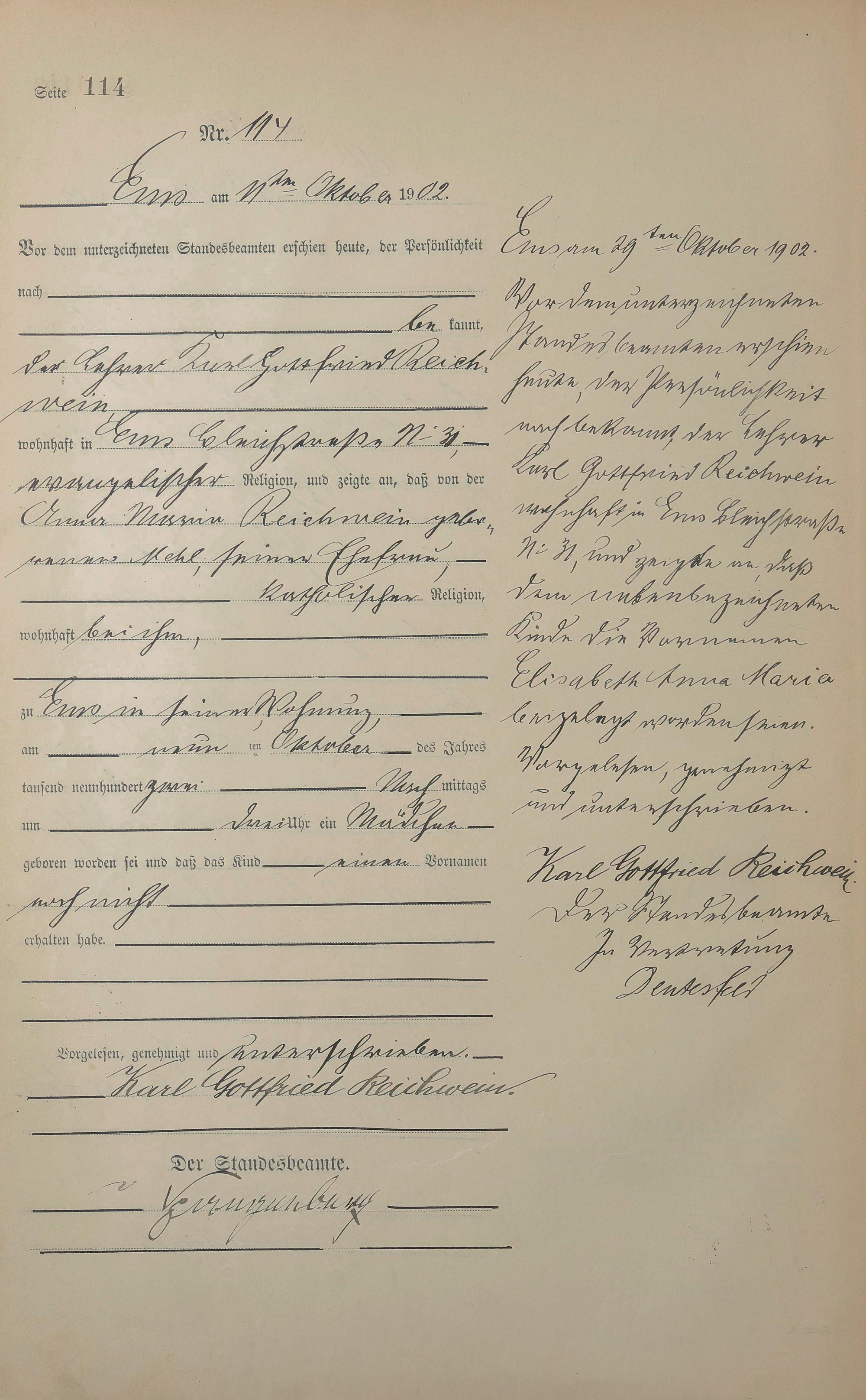 1278: Geburtsregister 1902