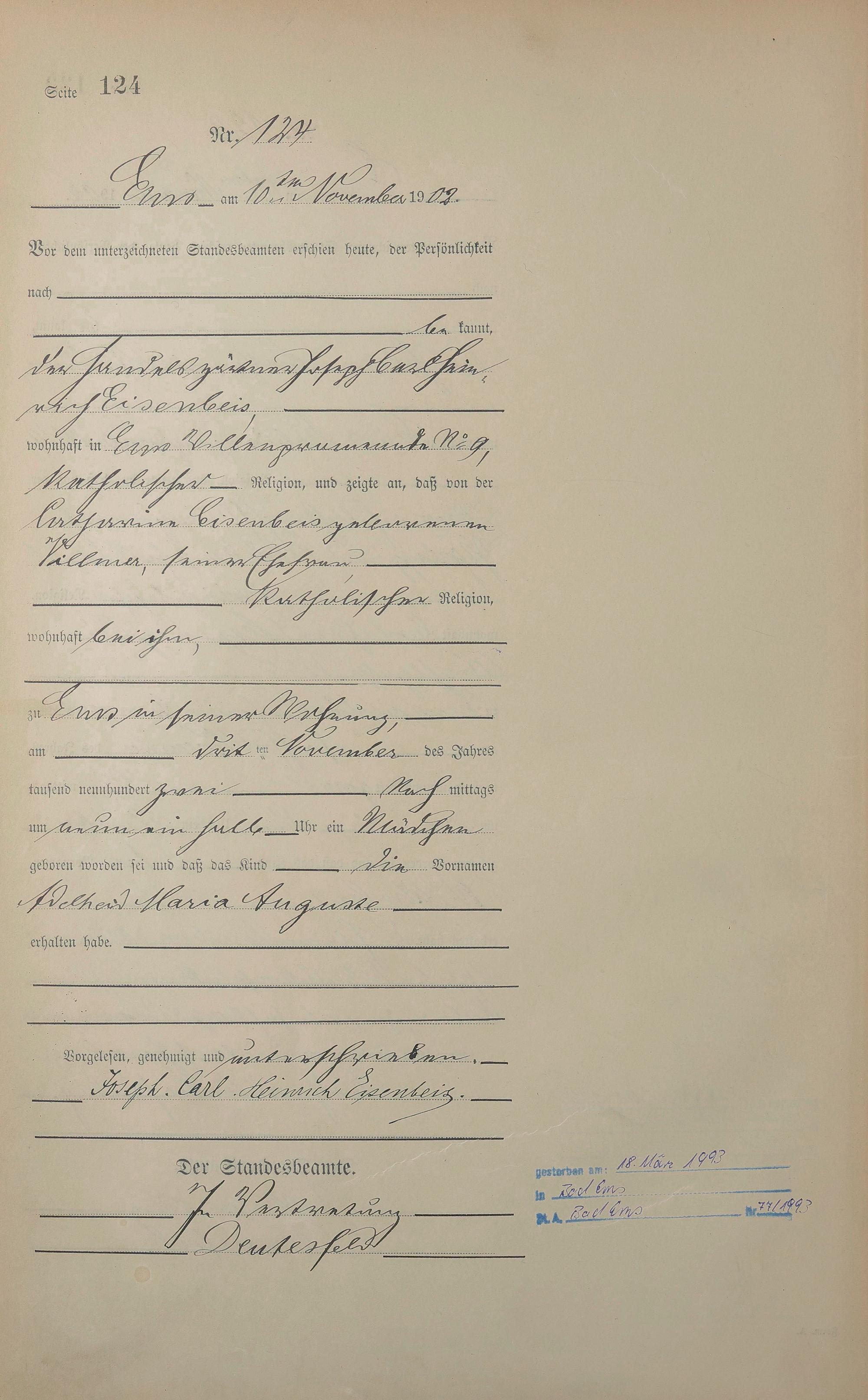 1278: Geburtsregister 1902