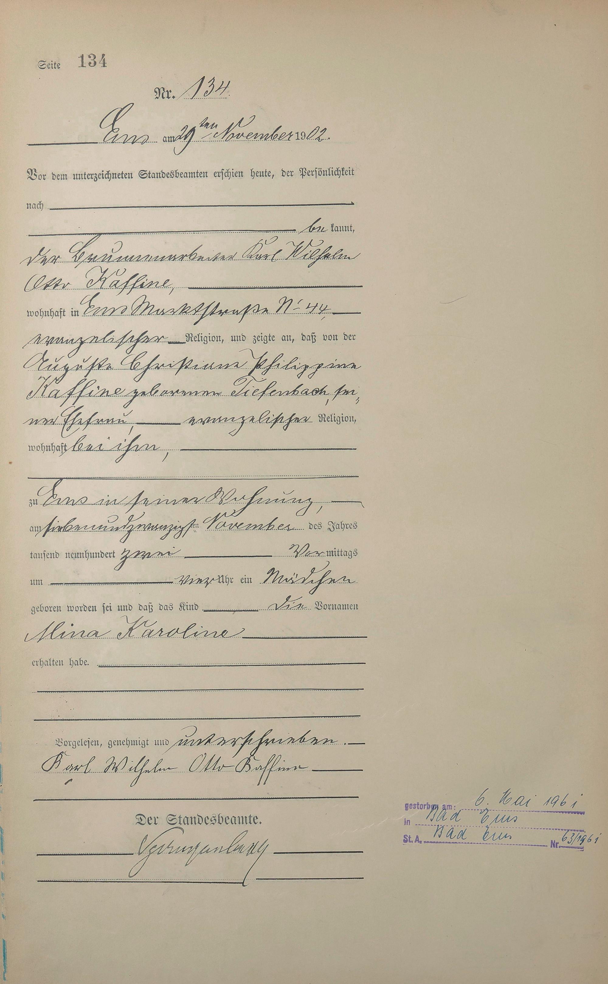 1278: Geburtsregister 1902