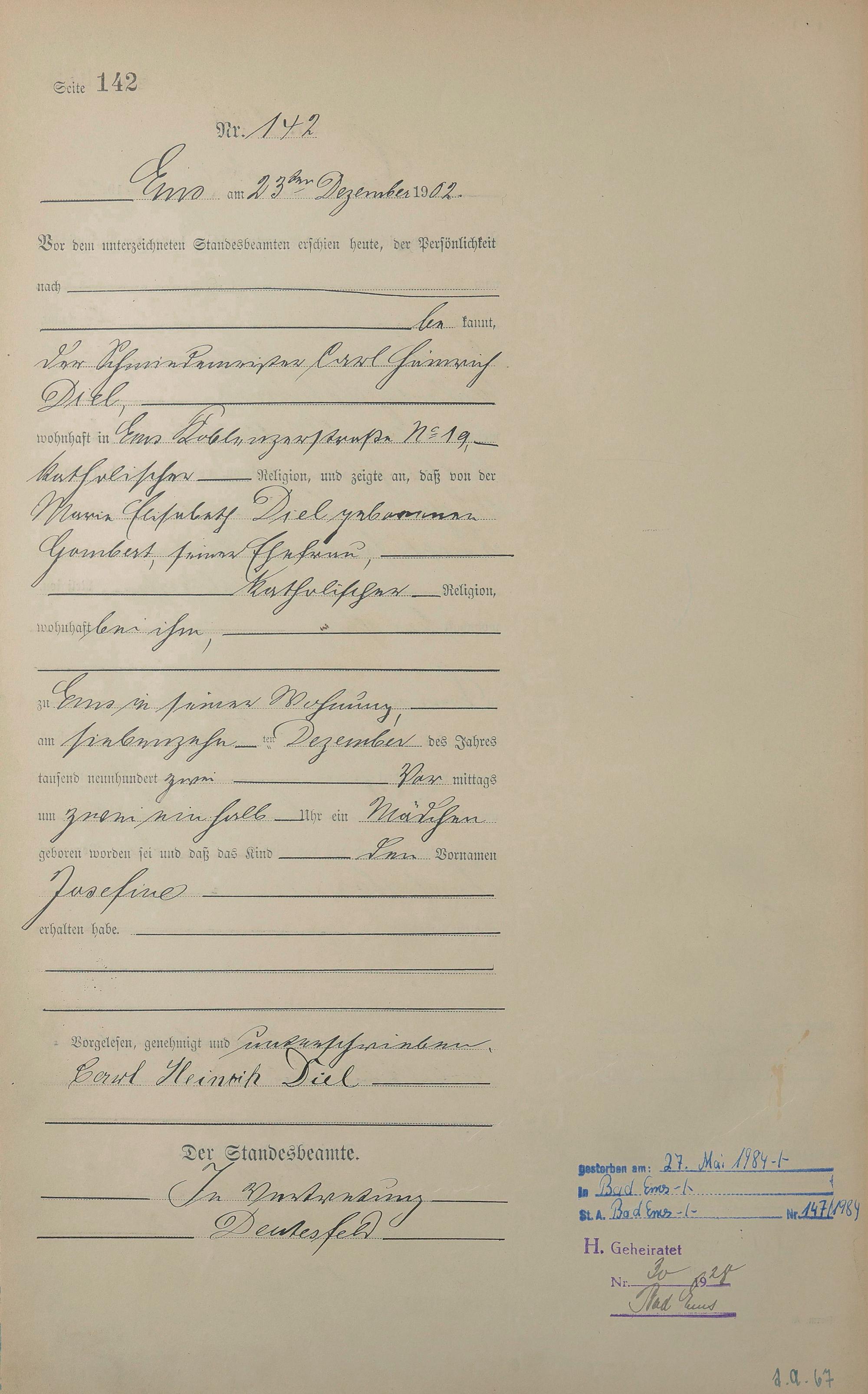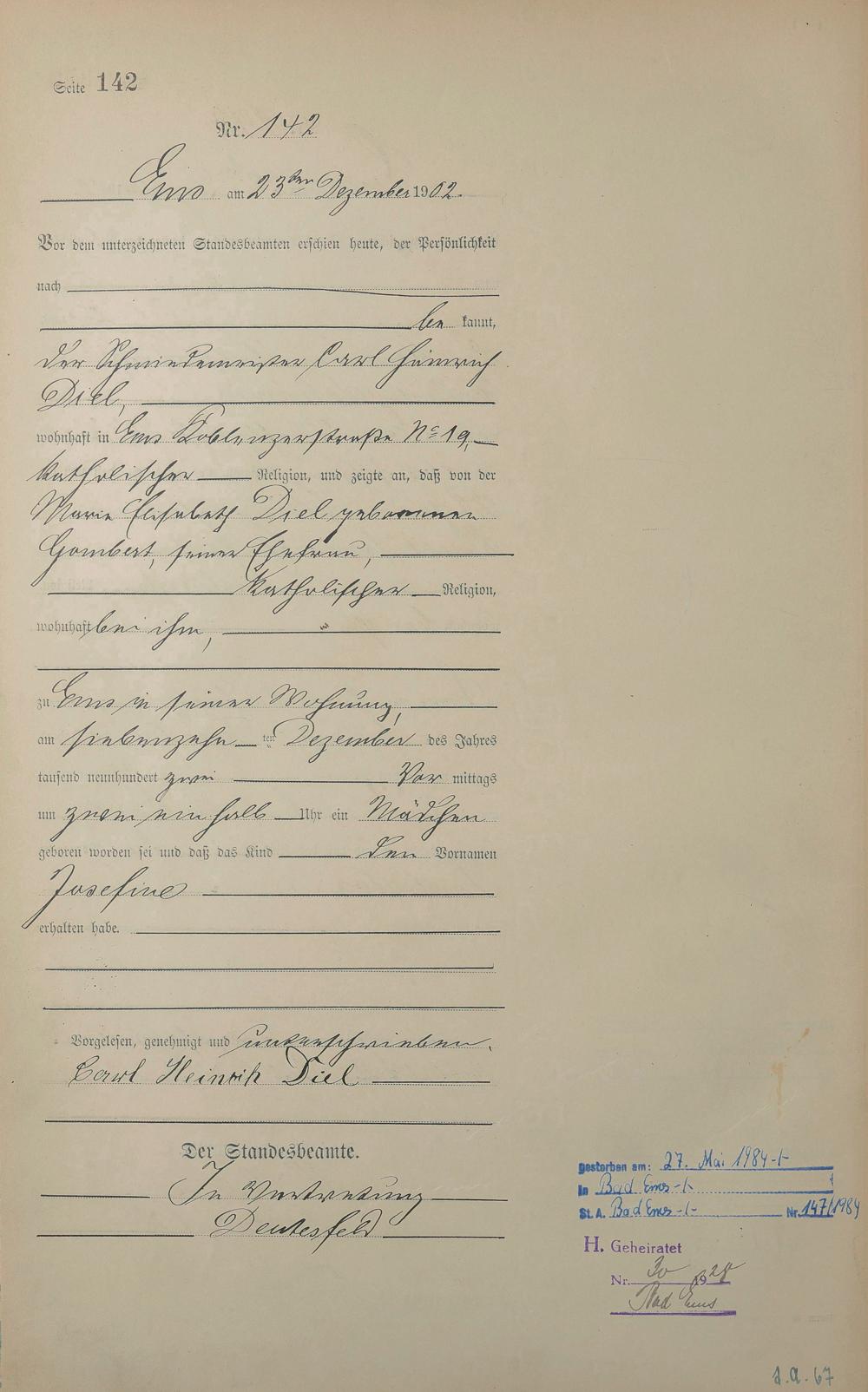 1278: Geburtsregister 1902