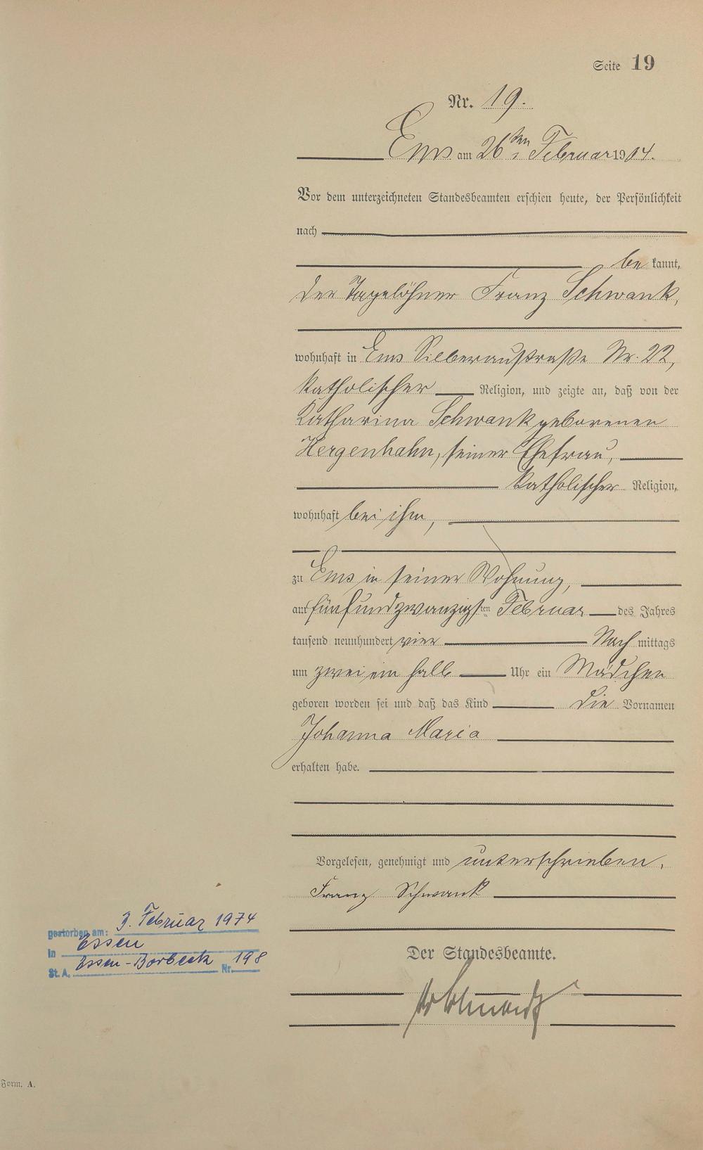 Geburtsregister 1904