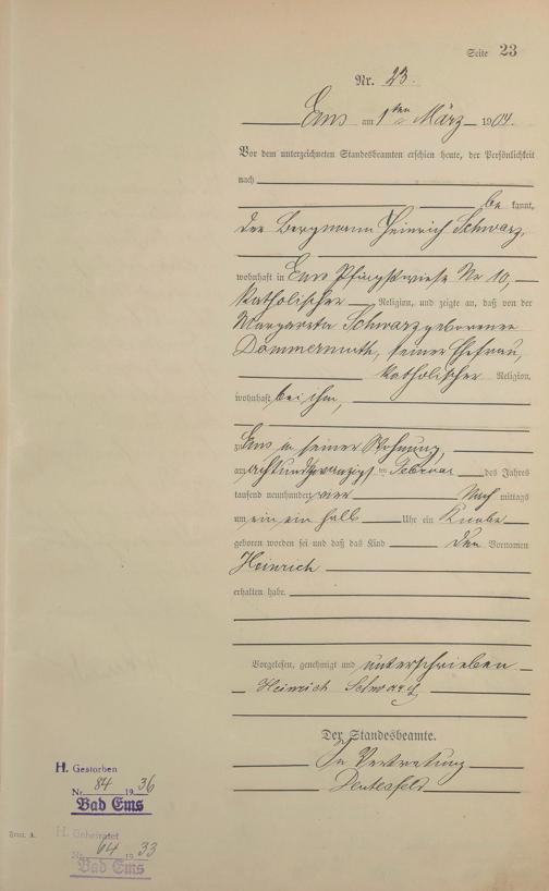 Geburtsregister 1904