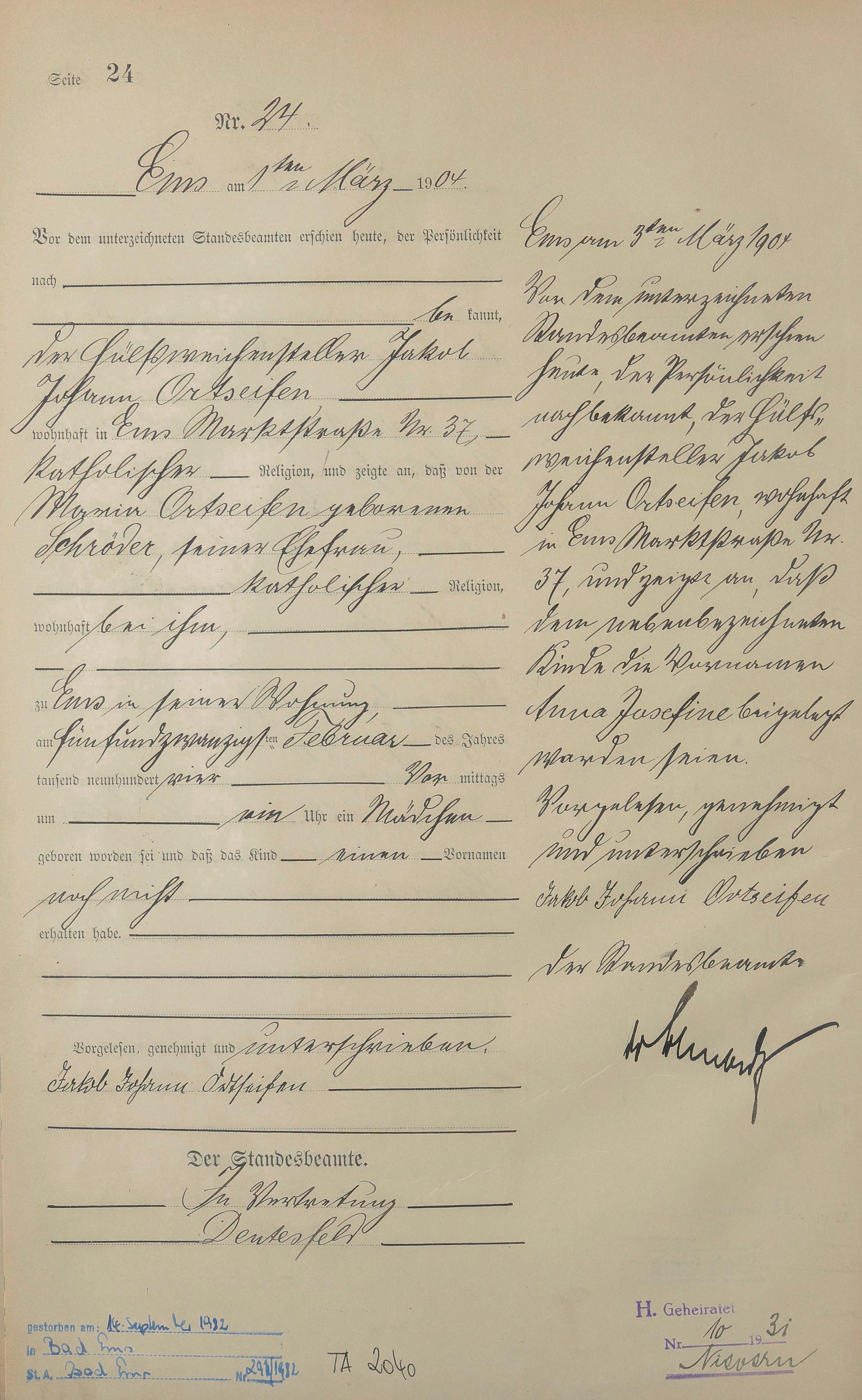 Geburtsregister 1904