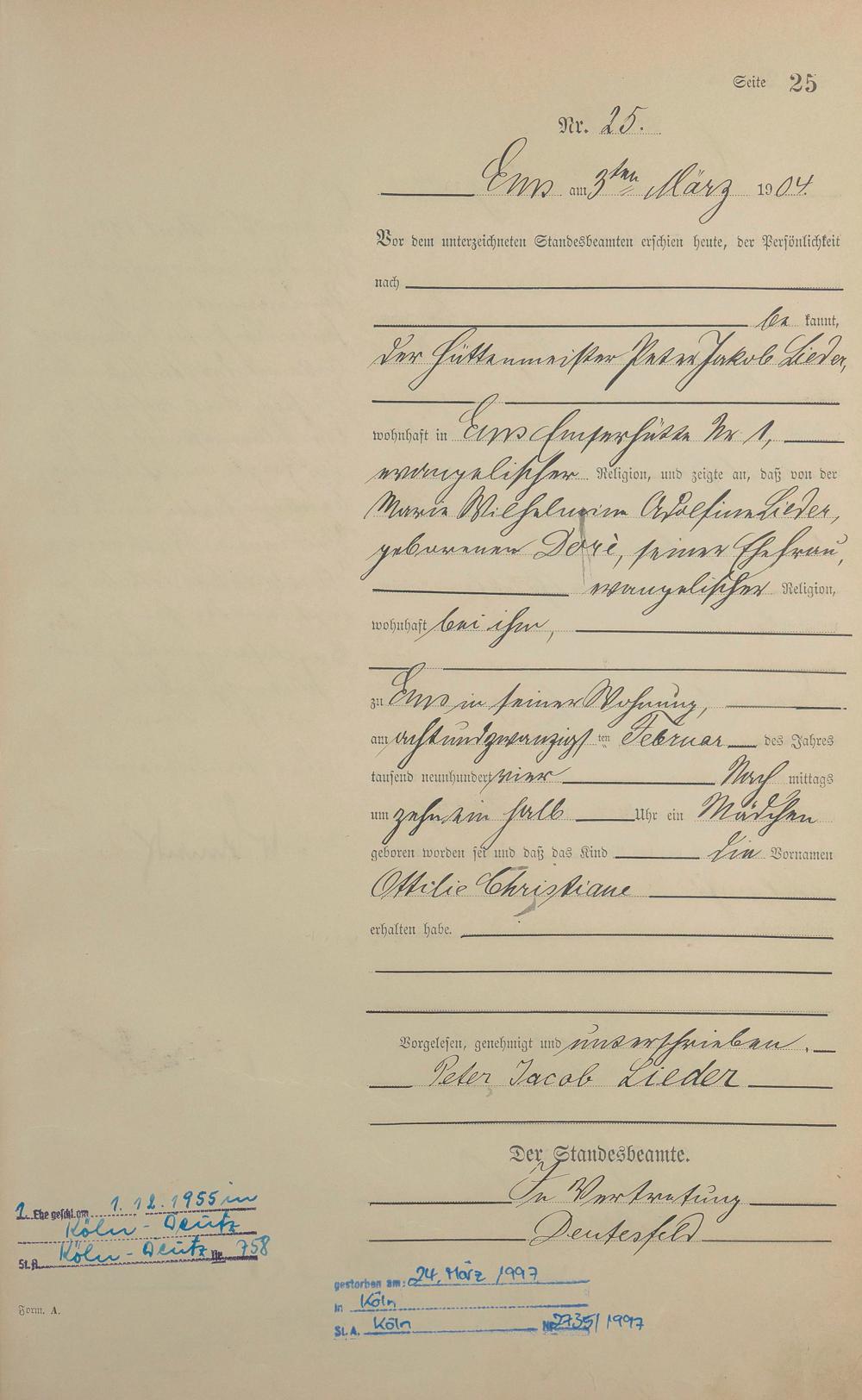 Geburtsregister 1904