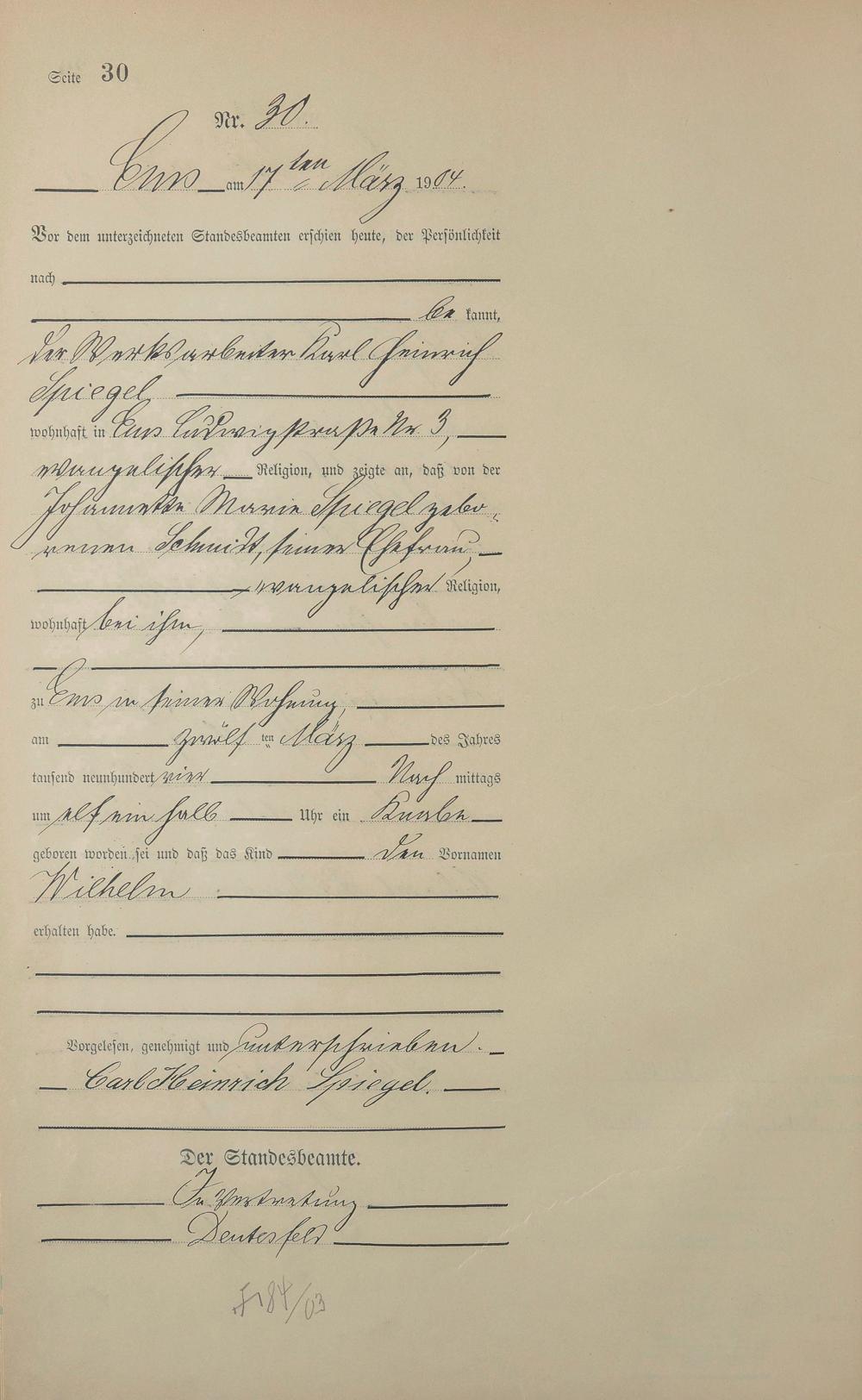 Geburtsregister 1904