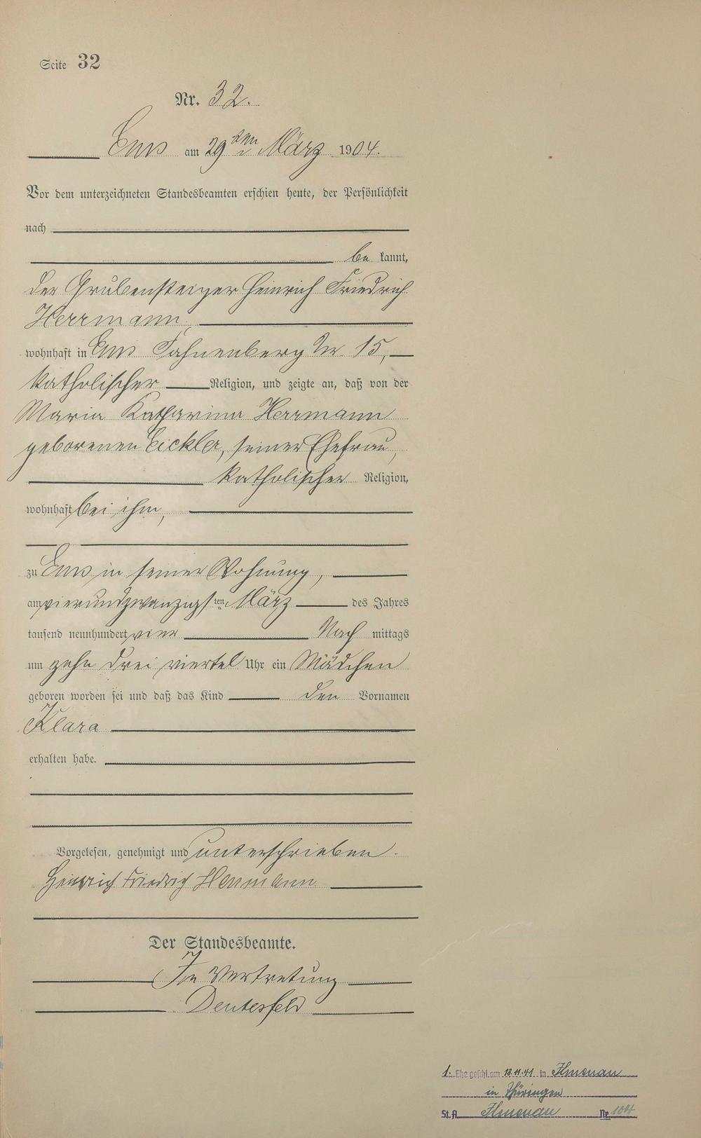 Geburtsregister 1904