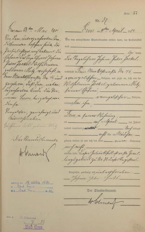 Geburtsregister 1904